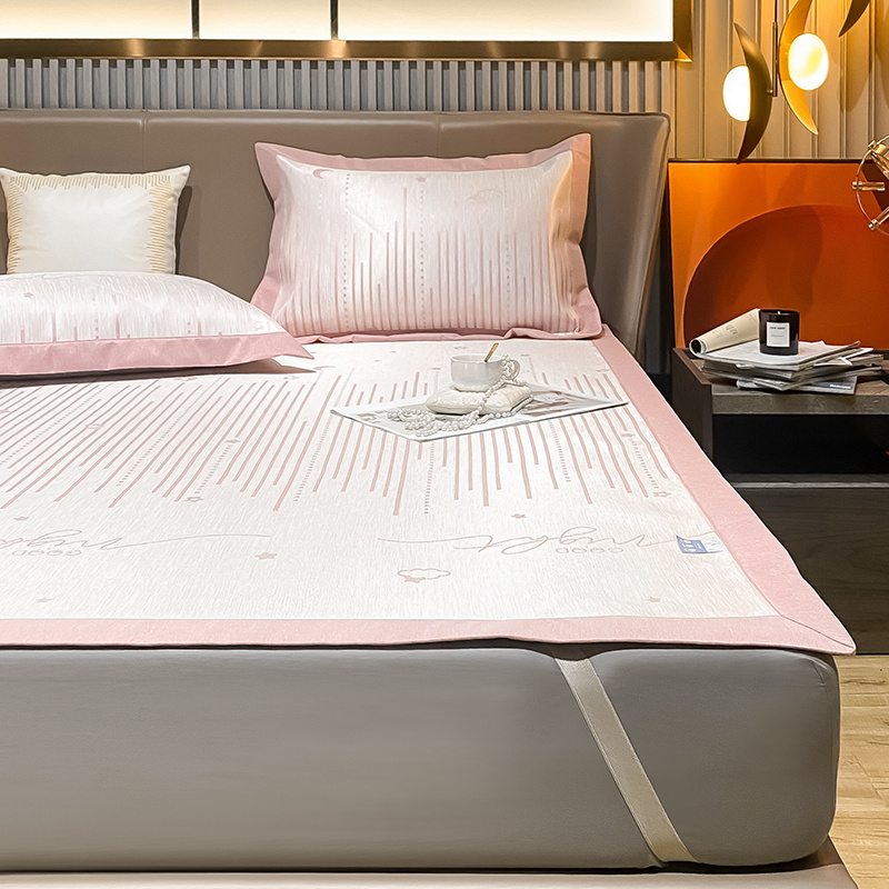 商品名称:懒猫 2022新款800D全工艺提花冰丝凉席床笠床垫款 洛可可-粉