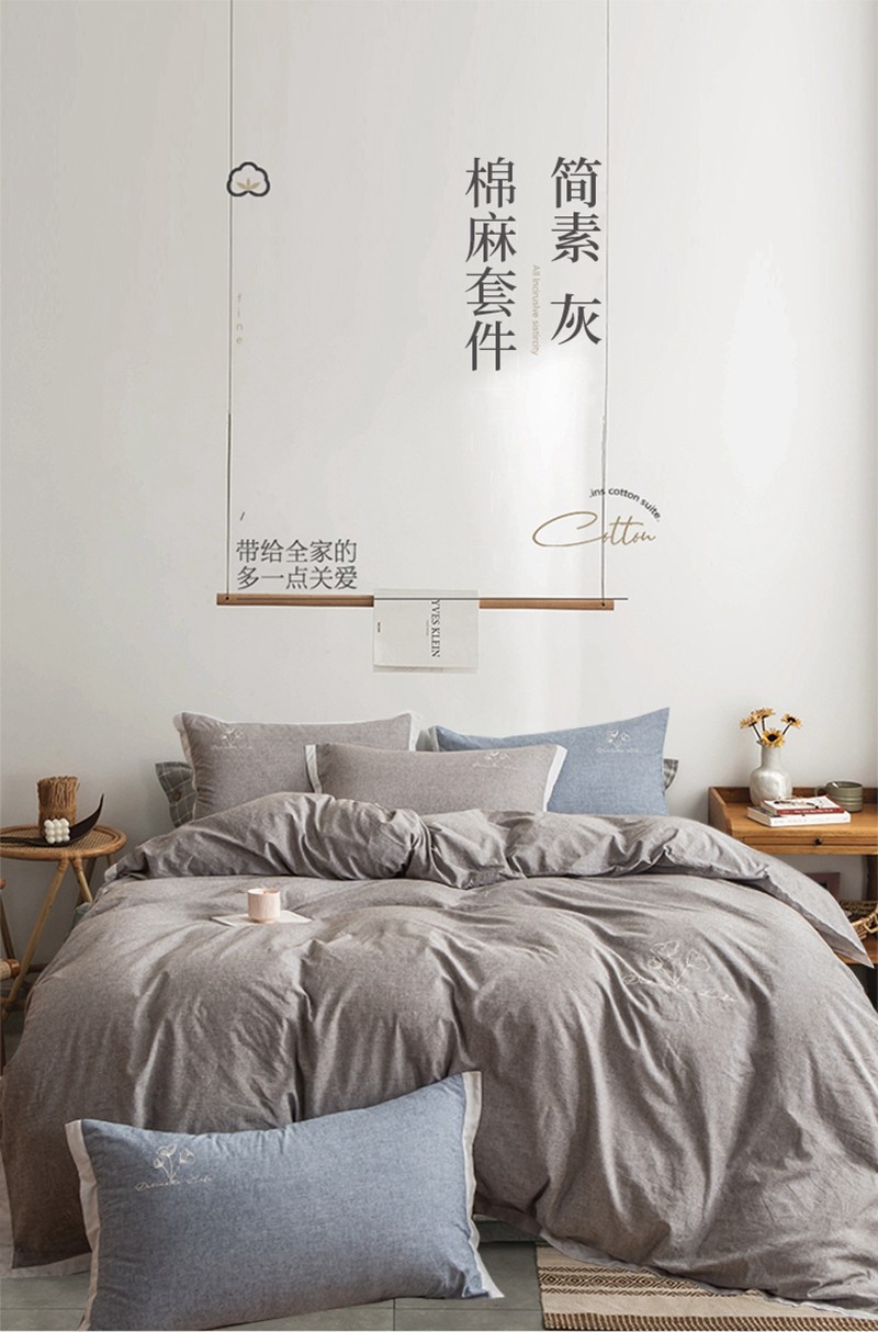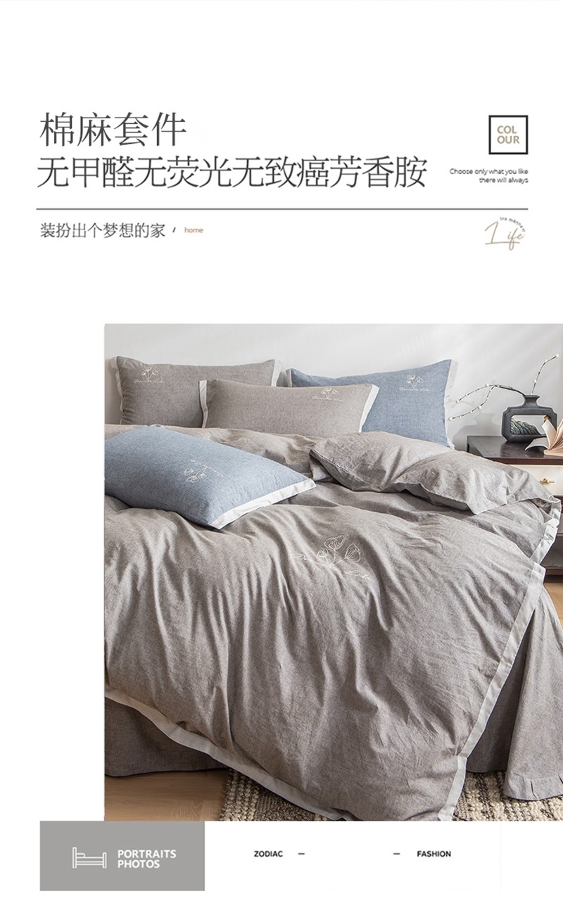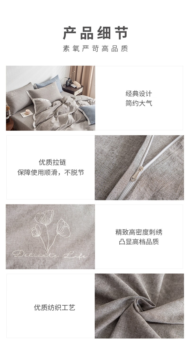 商品名称:简家居 2022新款棉麻绣花四件套 简素-灰