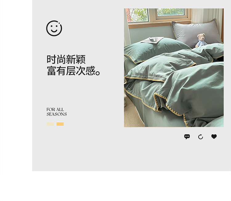 蓝米卡夫 2024新款A类全棉60S水洗棉贝欧系列 贝欧-森蓝