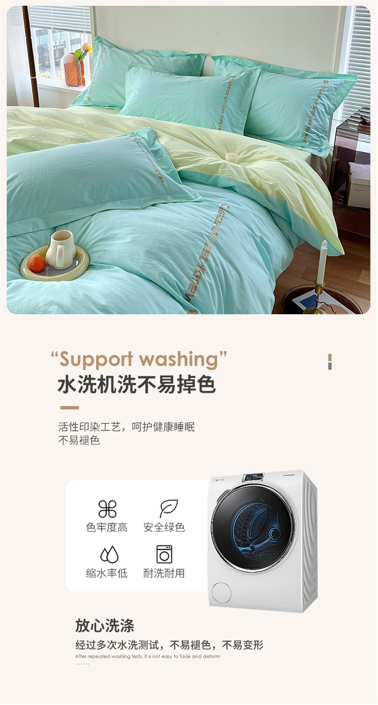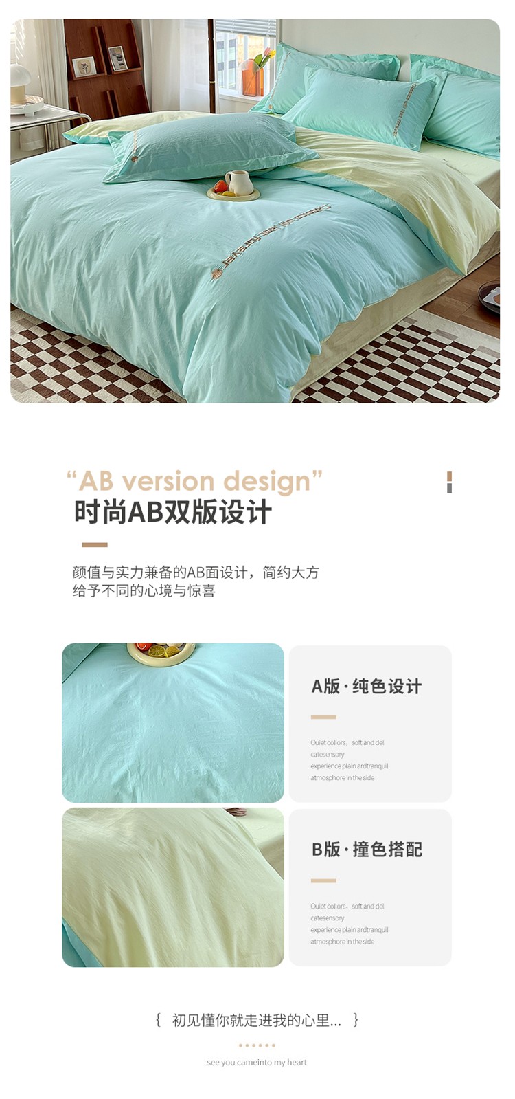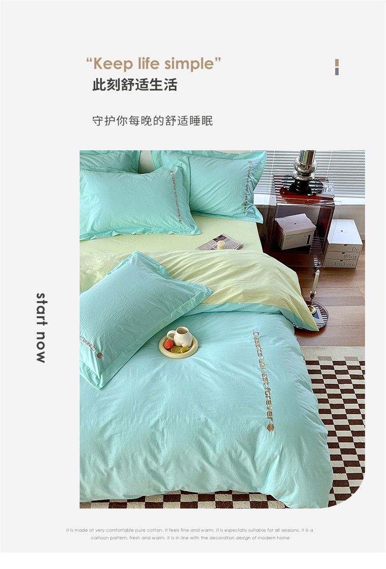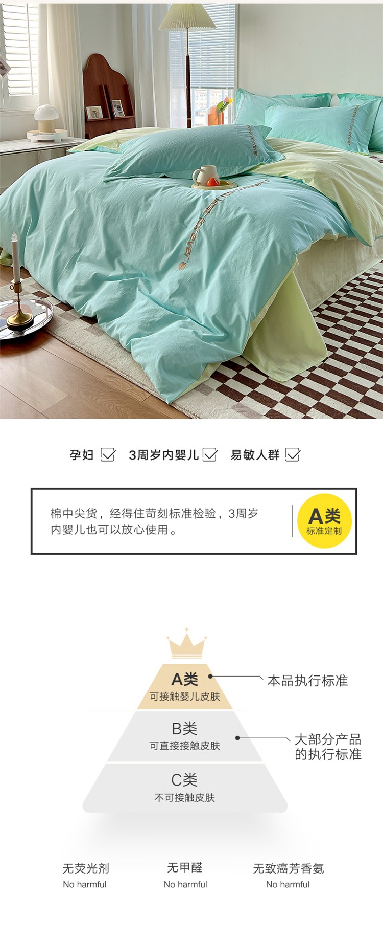(总)拼社家纺 2025新款母婴及全棉水洗棉刺绣四件套纯棉床上用品,艾玛绿+卡其,繁星蓝+卡其,繁星蓝+玫瑰粉,红豆沙+雅灰,迷雾灰+玫瑰粉,蜜粉+雅灰,奶油白+卡其,奶油白+香橙,牛仔蓝+浅蓝,香橙+雅灰