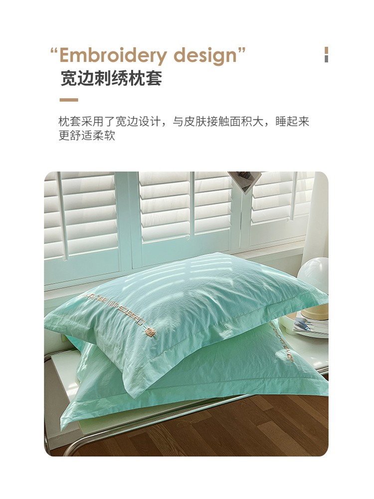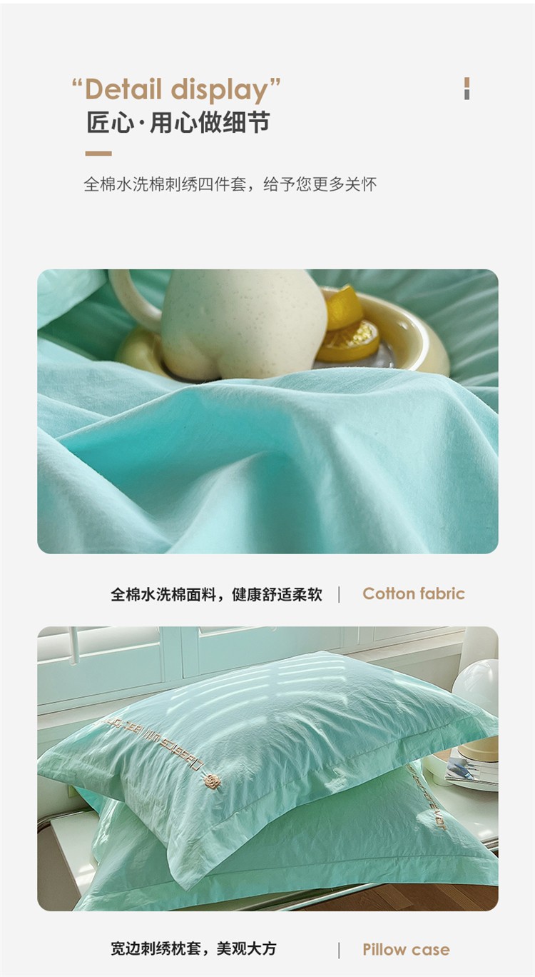 拼社 新款全棉水洗棉刺绣四件套纯棉床上用品-漫系列 湖水蓝+青草绿