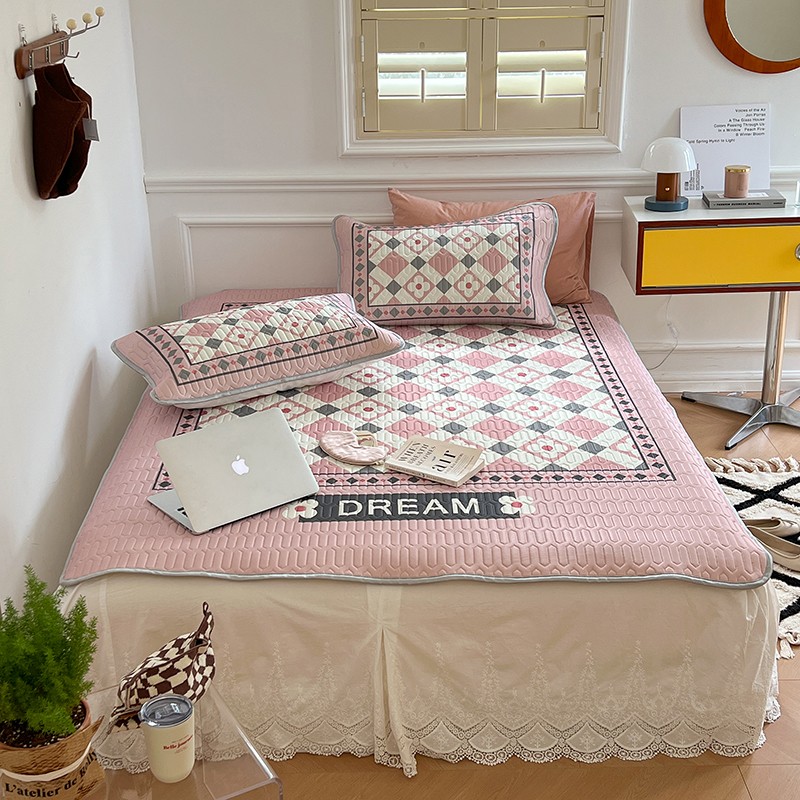 商品名称:昔可 2022新款大版印花乳胶凉席 粉幸运花
