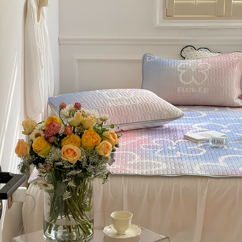 昔可 2022新款大版印花乳胶凉席 晕染花朵