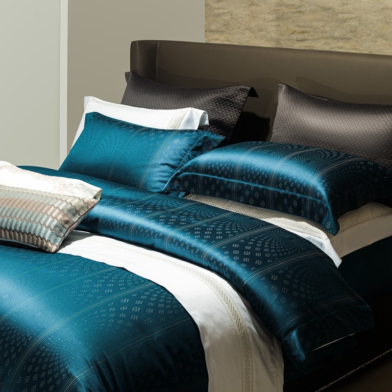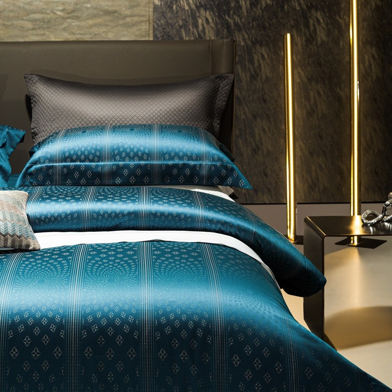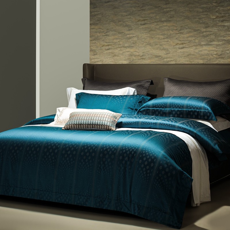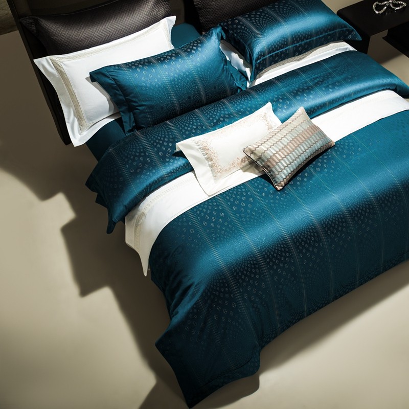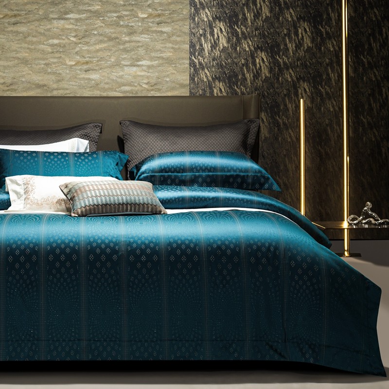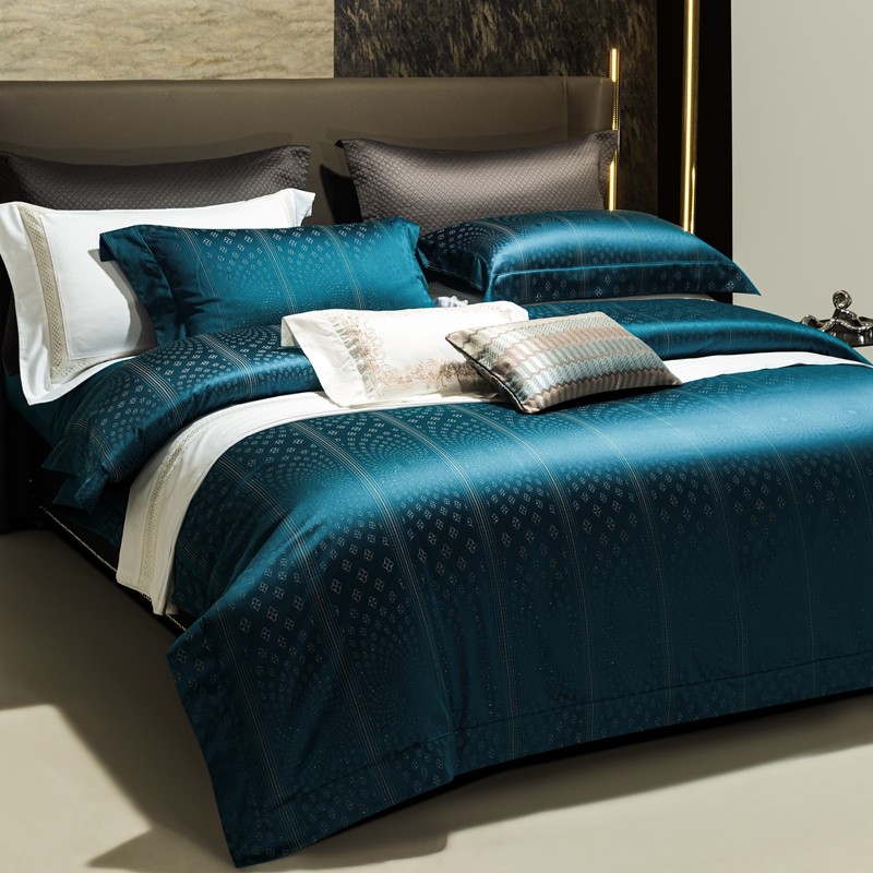 商品名称:雅韵诗真丝馆 2023新款全棉色织提花四件套 伊丽莎白孔雀蓝