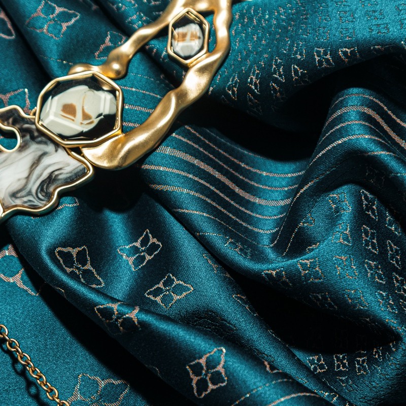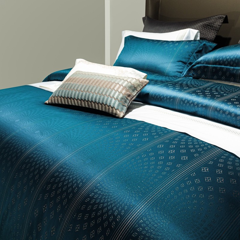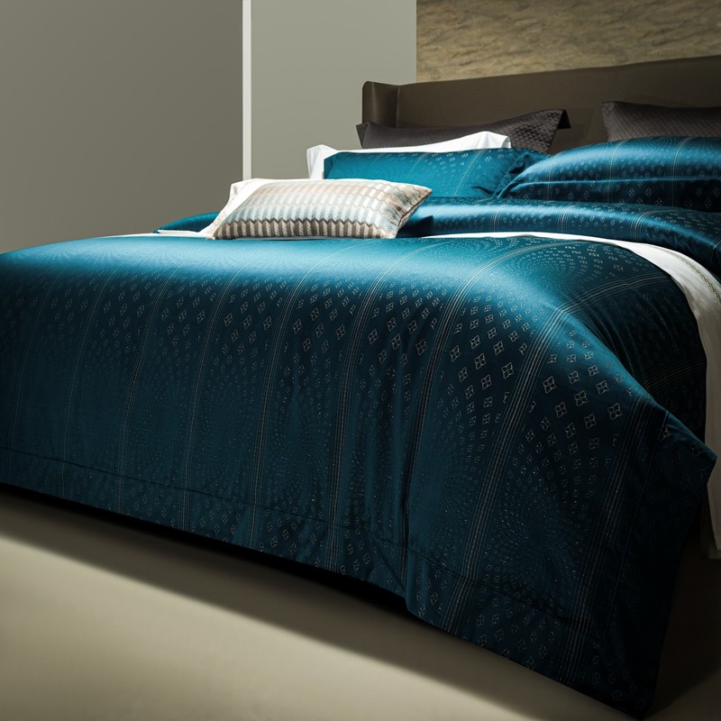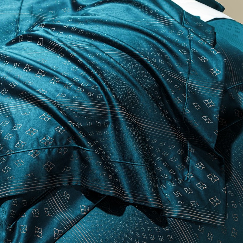 雅韵诗真丝馆 2023新款全棉色织提花四件套 伊丽莎白孔雀蓝