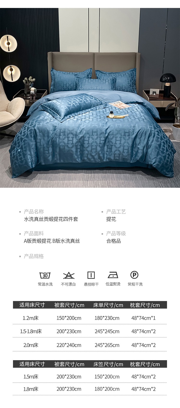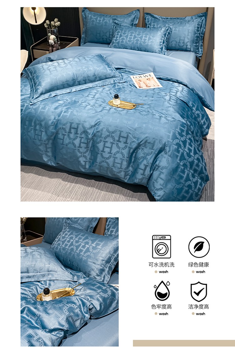 商品名称:遇见家居 2022水洗磨毛亲肤棉贡缎提花四件套-柏林-宾利蓝