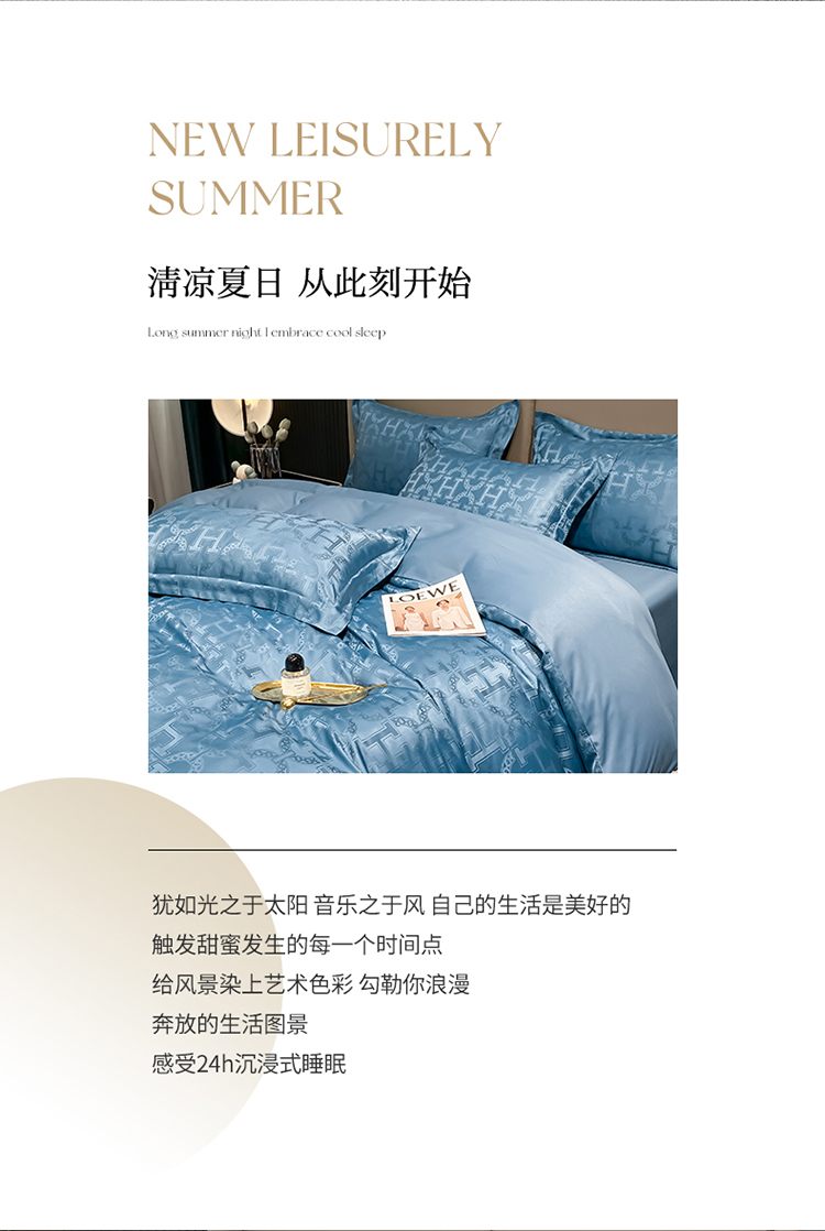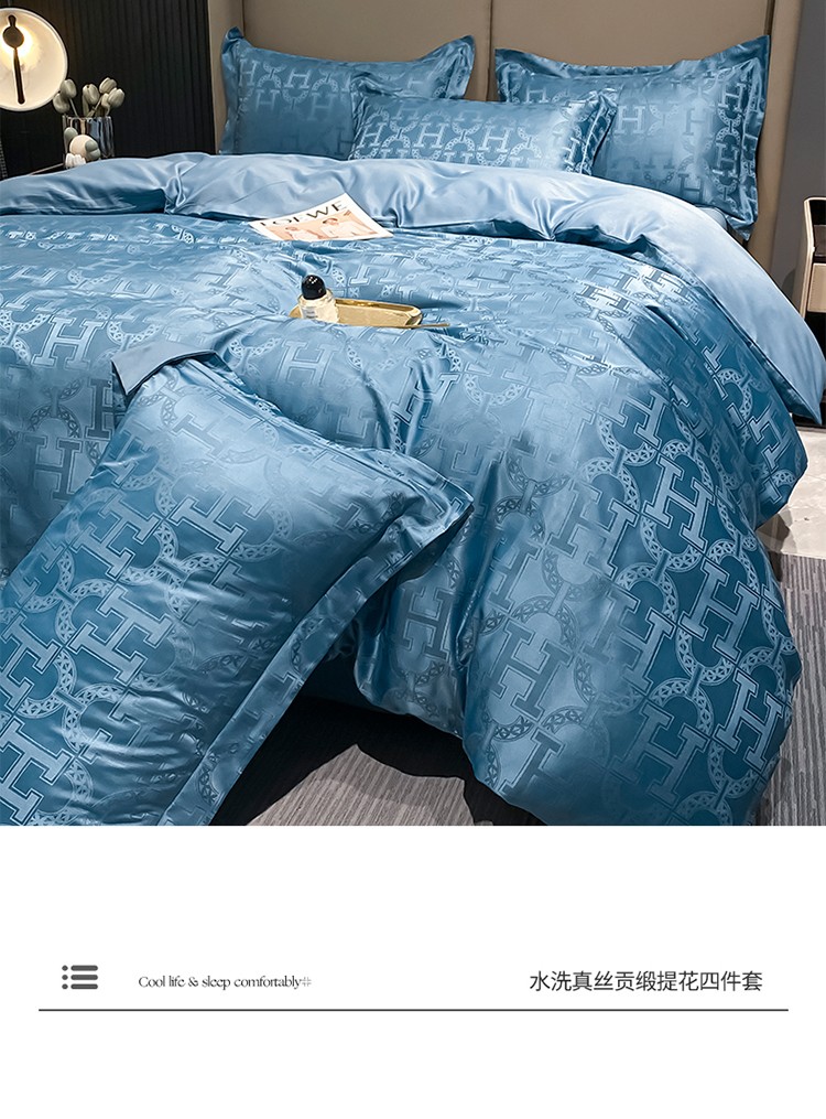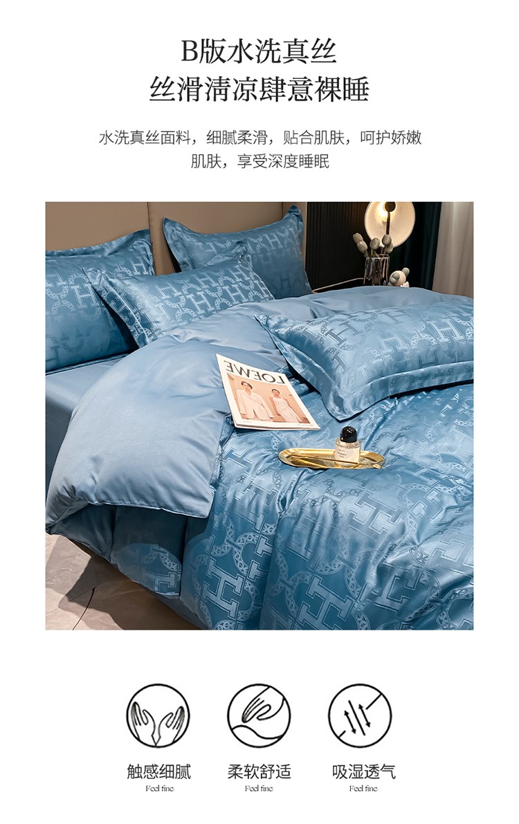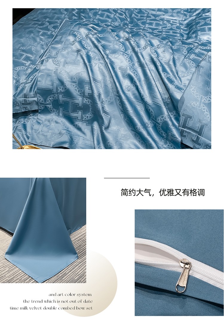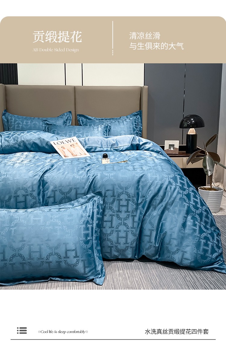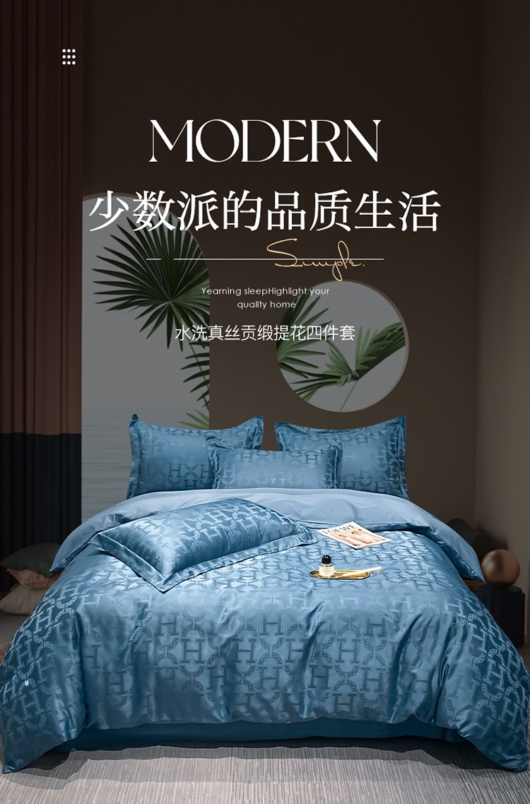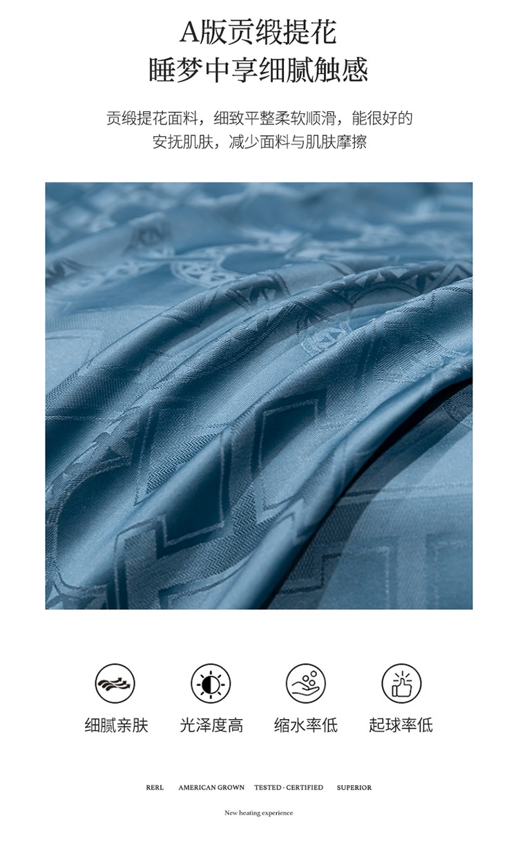 遇见家居 2022水洗磨毛亲肤棉贡缎提花四件套-柏林-宾利蓝