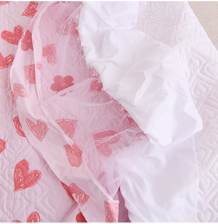 仙女风欧根纱全棉床盖四件套 蕾丝花边夹棉纯棉床裙三件套枕套