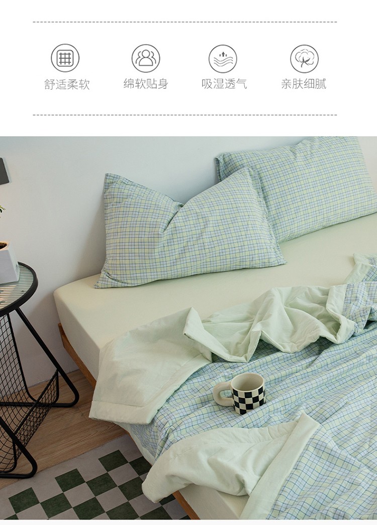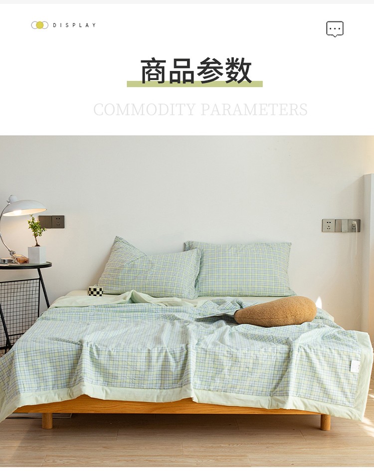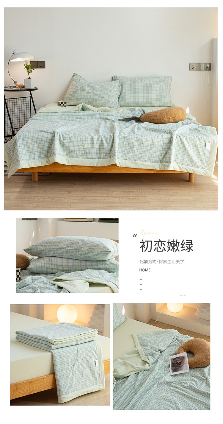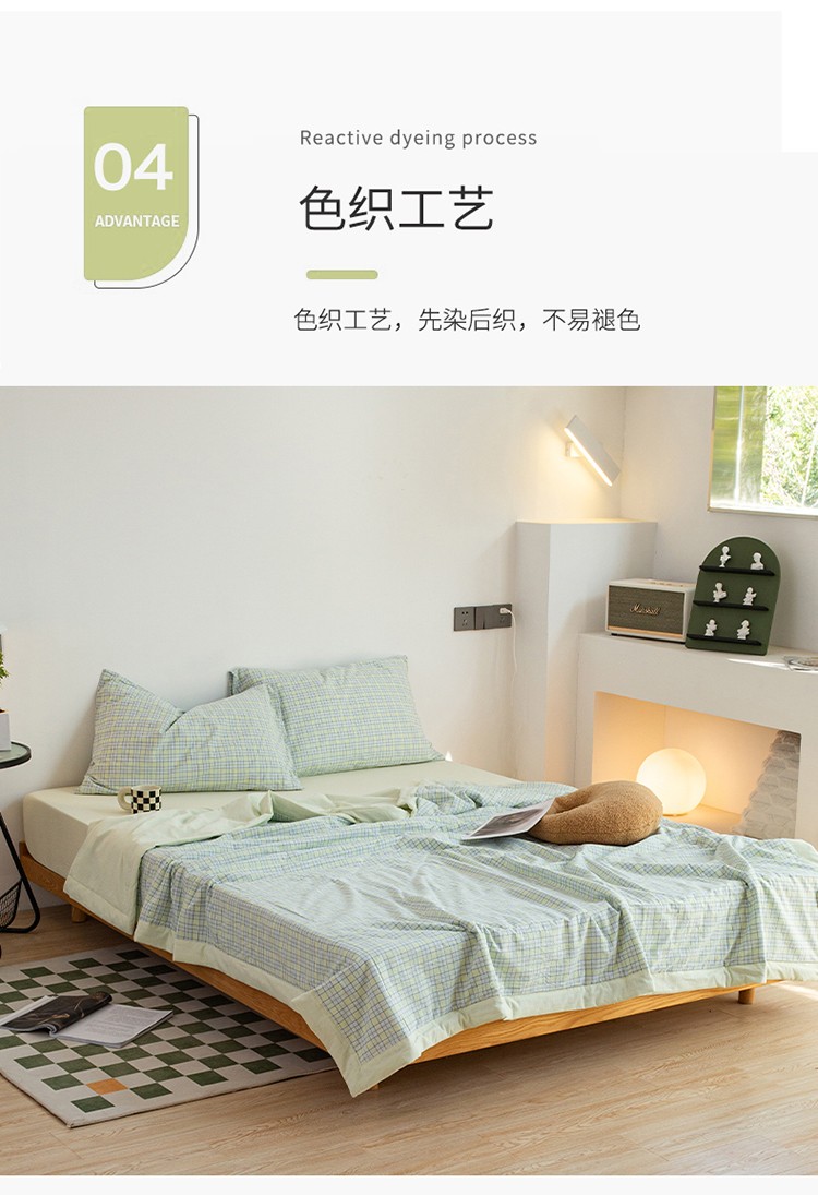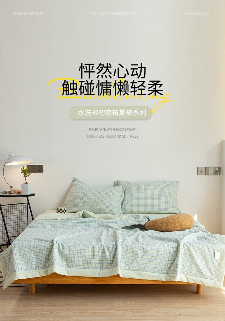 • 91家纺网 家纺一手货源 找家纺 安莱生活 2022新款水洗棉初恋格夏被夏被四件套 初恋嫩绿