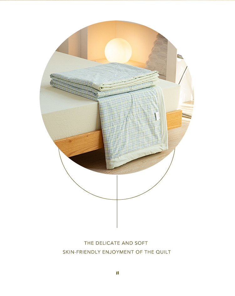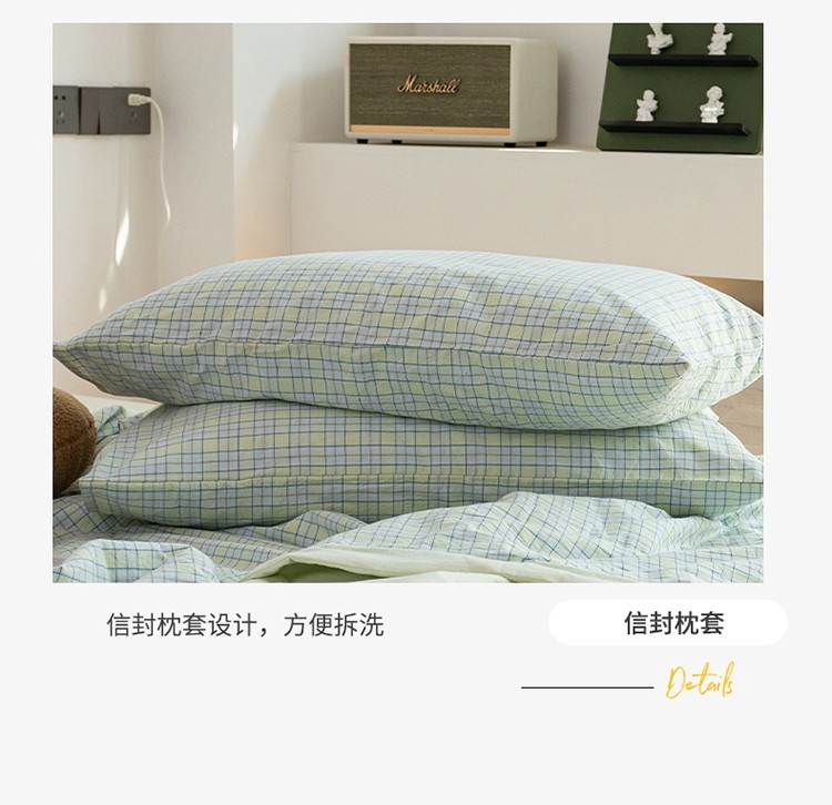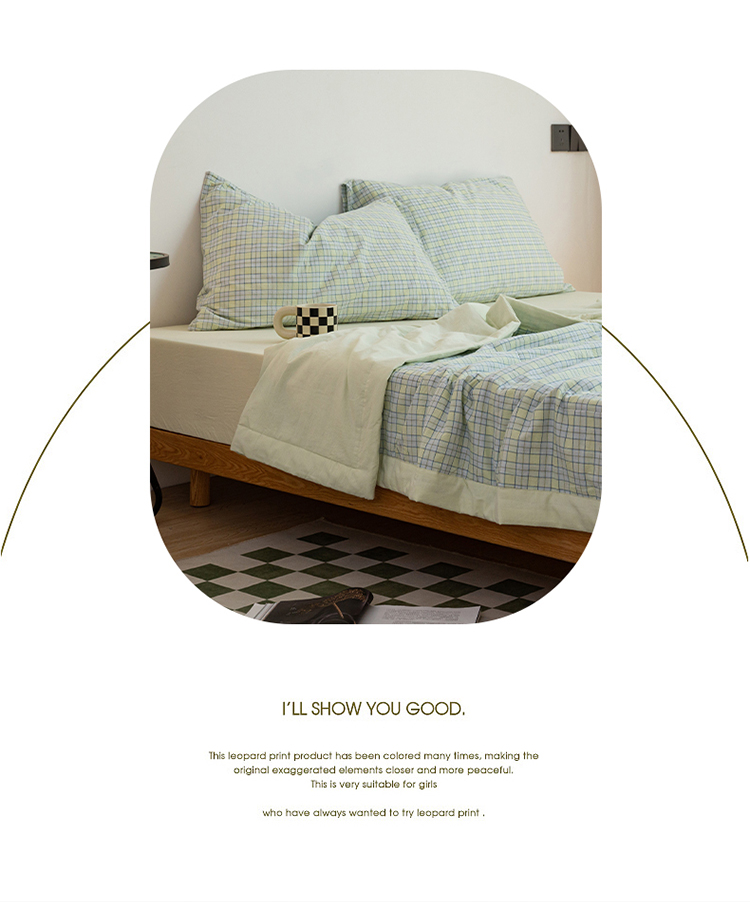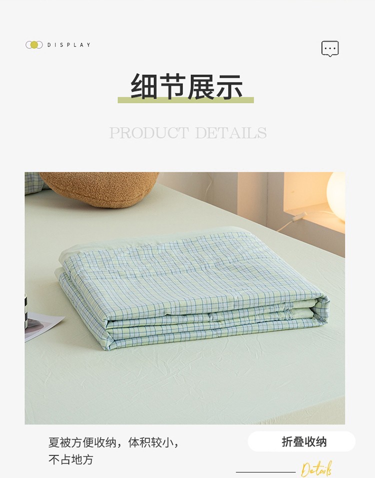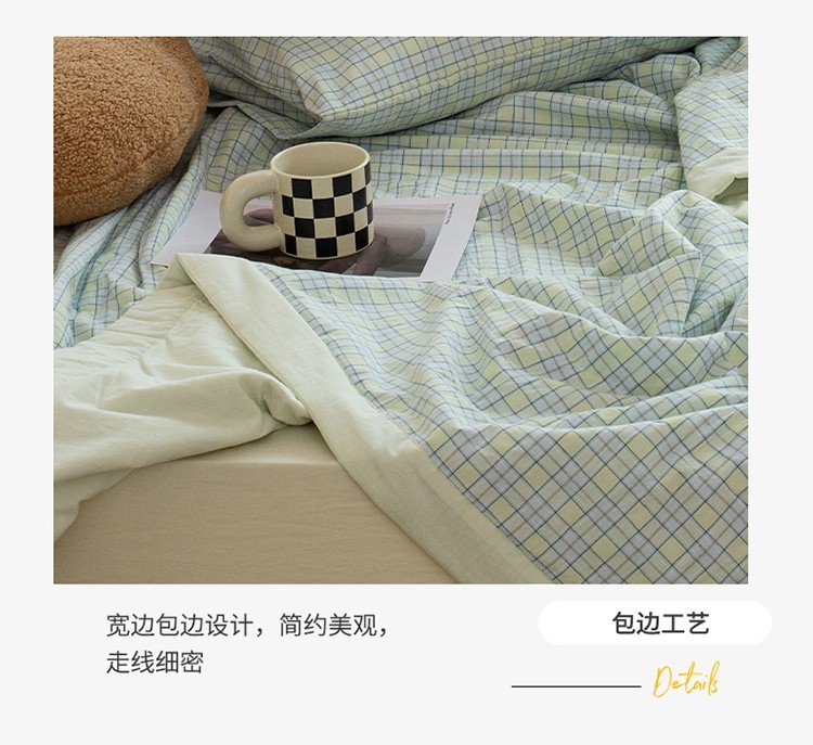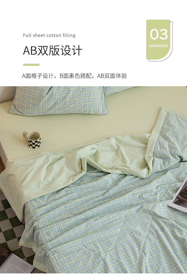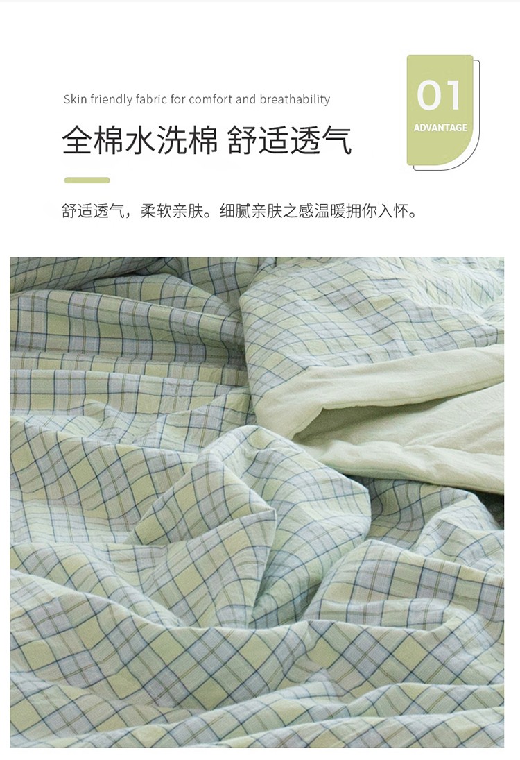 • 91家纺网 家纺一手货源 找家纺 安莱生活 2022新款水洗棉初恋格夏被夏被四件套 初恋嫩绿