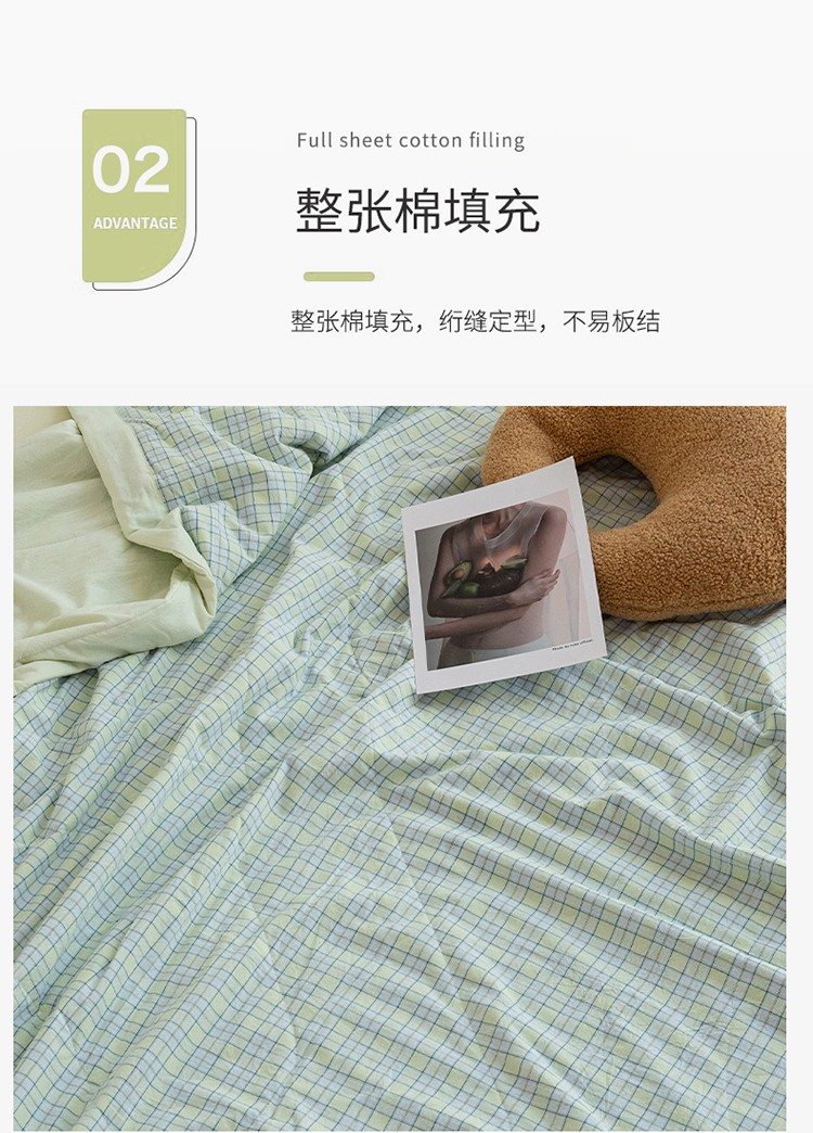 安莱生活 2022新款水洗棉初恋格夏被夏被四件套 初恋嫩绿