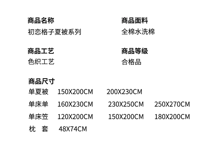 当前位置: 91家纺网 > 商品网购 > 被子 > 夏被 > 安莱生活 2022新款水洗棉初恋格夏被夏被四件套 初恋嫩绿