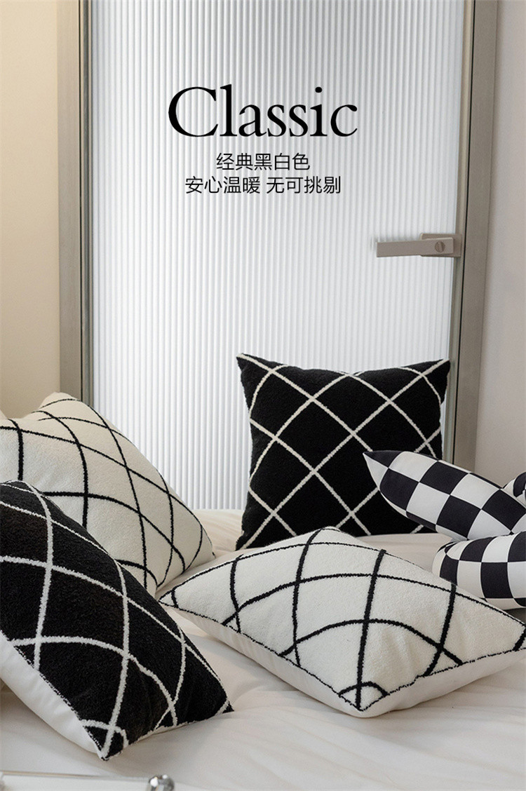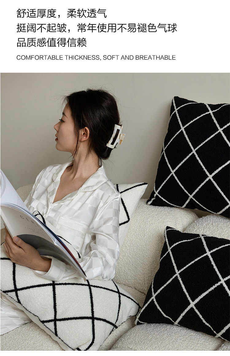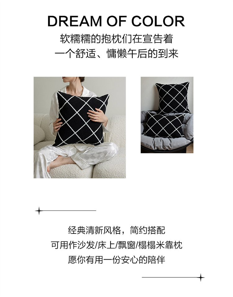 (总)美茉家居跨境电商爆款皮革帆布拼接抱枕黑白印花可拆洗靠垫,更甚,留白,有物,长物