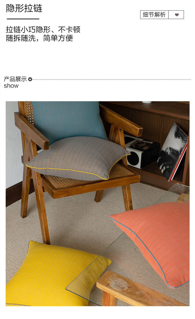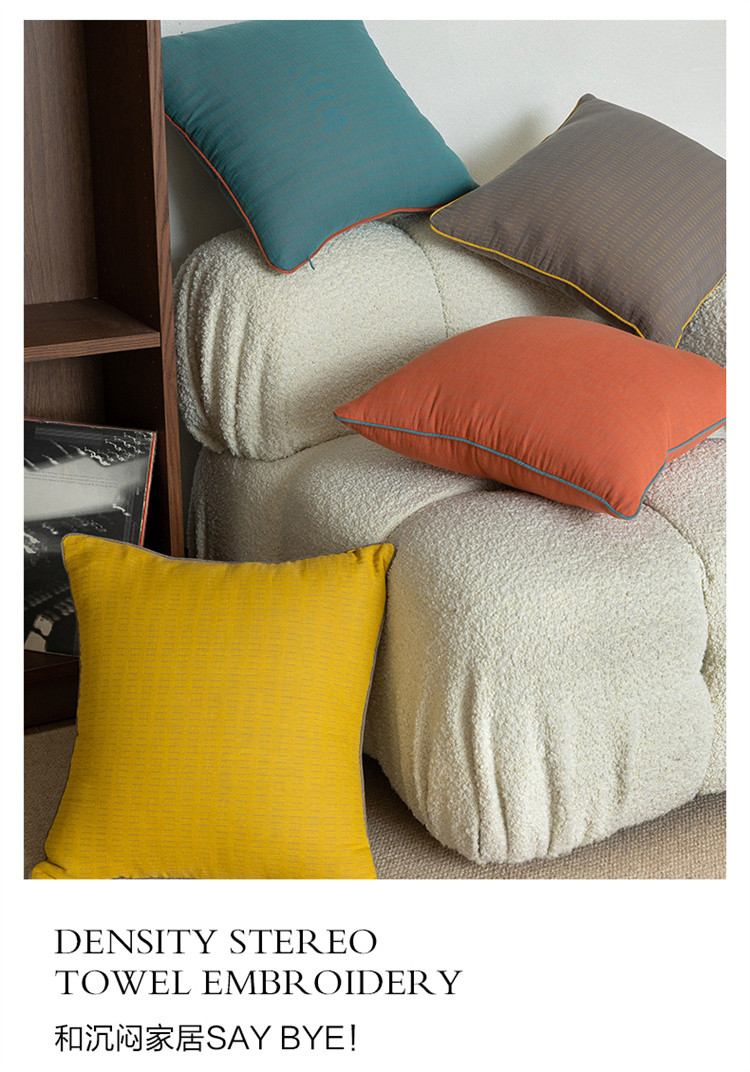 (总)美茉家居 2025新款加厚高端沙发布雪尼尔滚边方枕抱枕,缎面红,孔雀绿,南瓜橘,烟雨灰,珍珠白