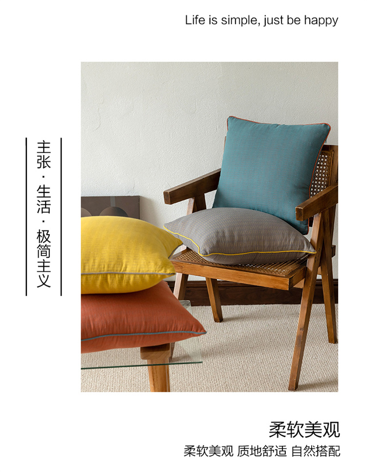 (总)美茉家居 2023新款棉麻双针抱枕,湖蓝,酒红,麻本,摩卡棕,土褐
