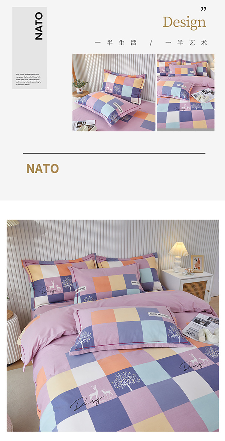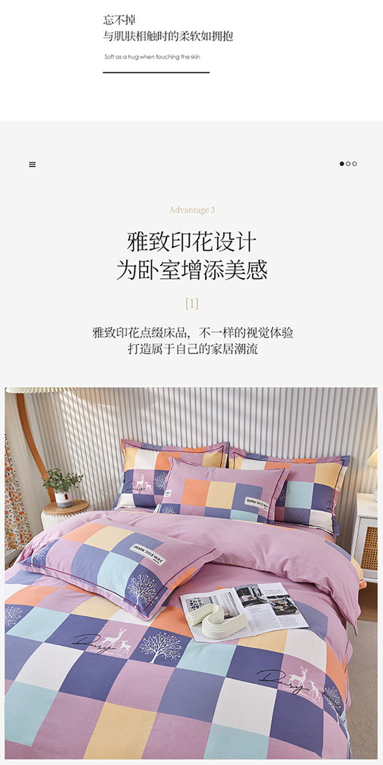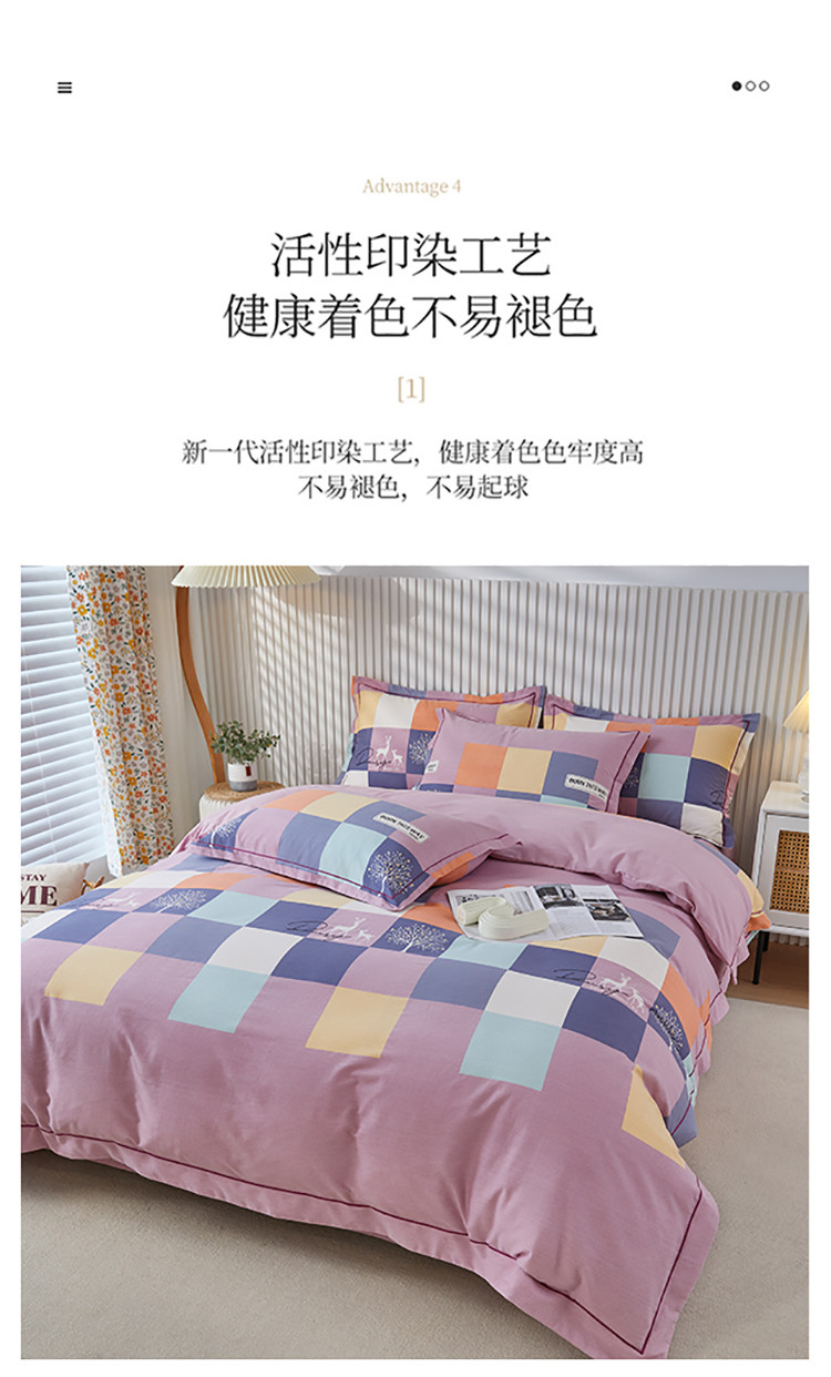 商品名称:杜先生 2023新款全棉加厚磨毛系列四件套鹿角小镇-豆沙