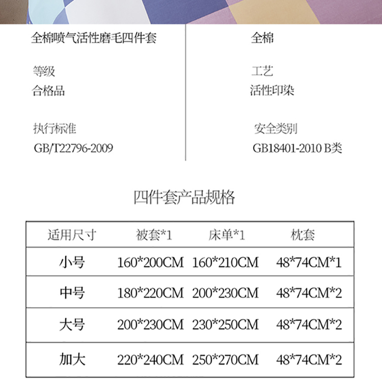 大号1.8m床单款四件套