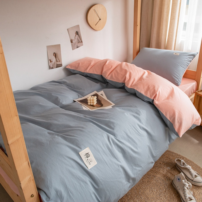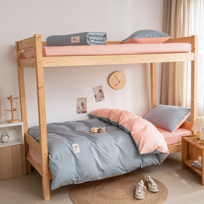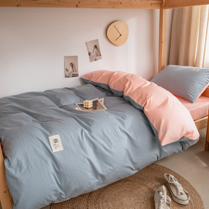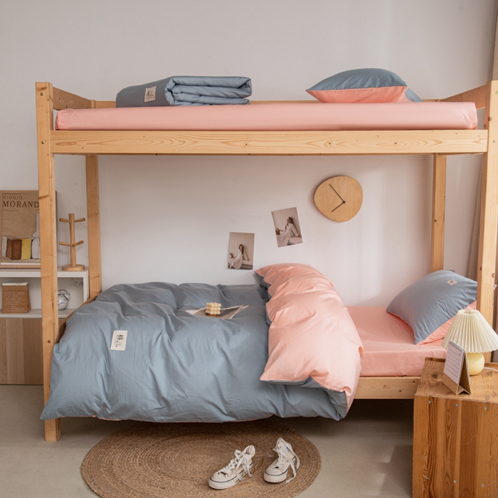 当前位置: 91家纺网 > 商品网购 > 床品套件 > 三件套 > 杜先生 2023新款全棉学生宿舍上下铺色拼系列三件套 海蓝-初恋粉