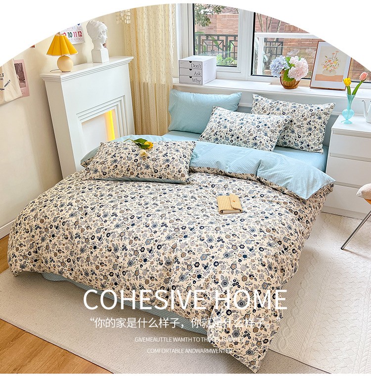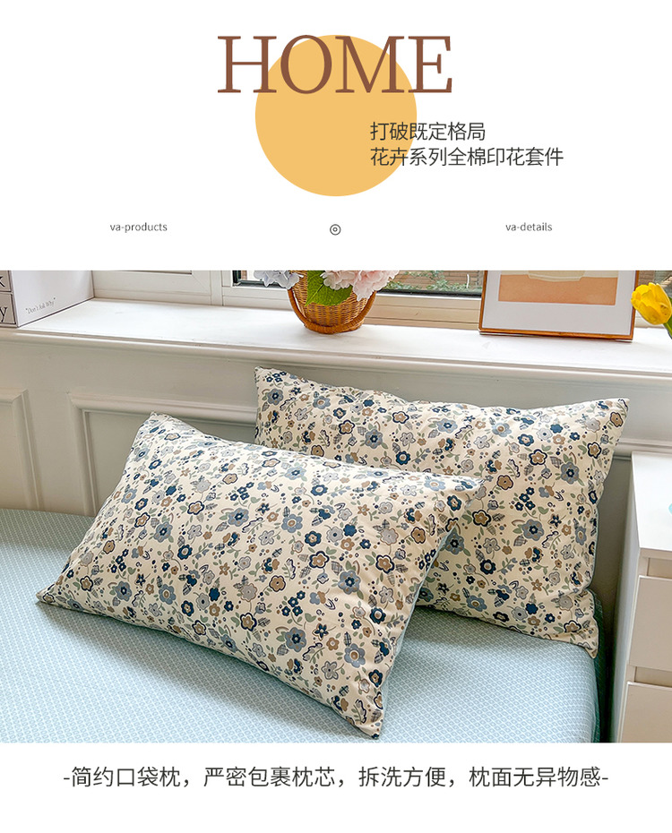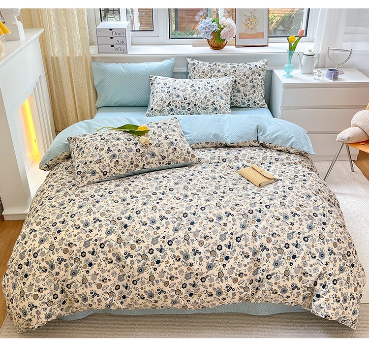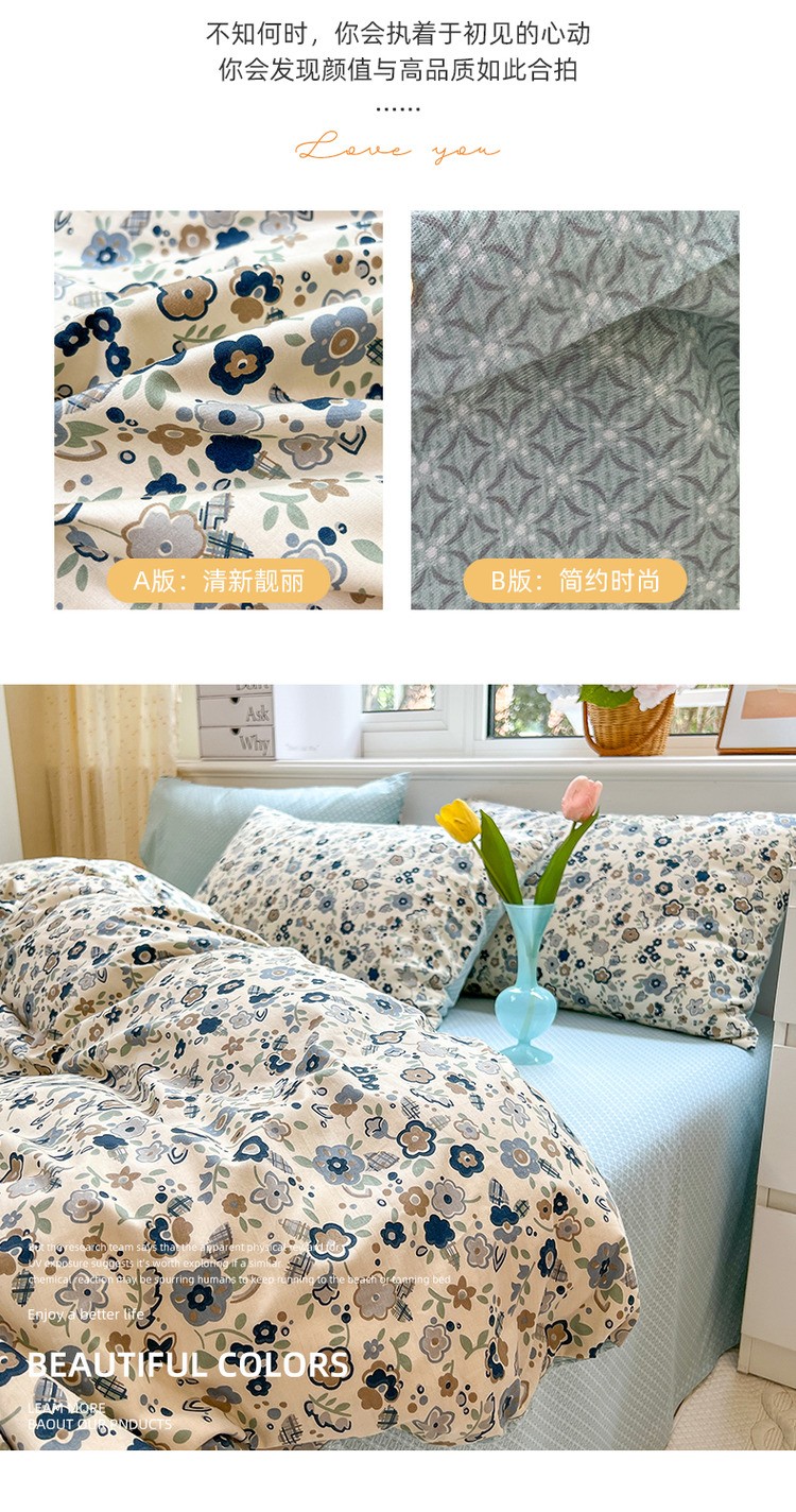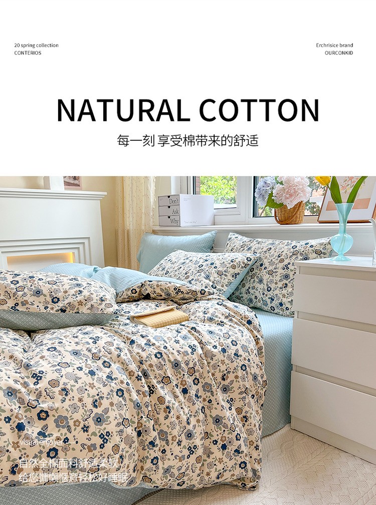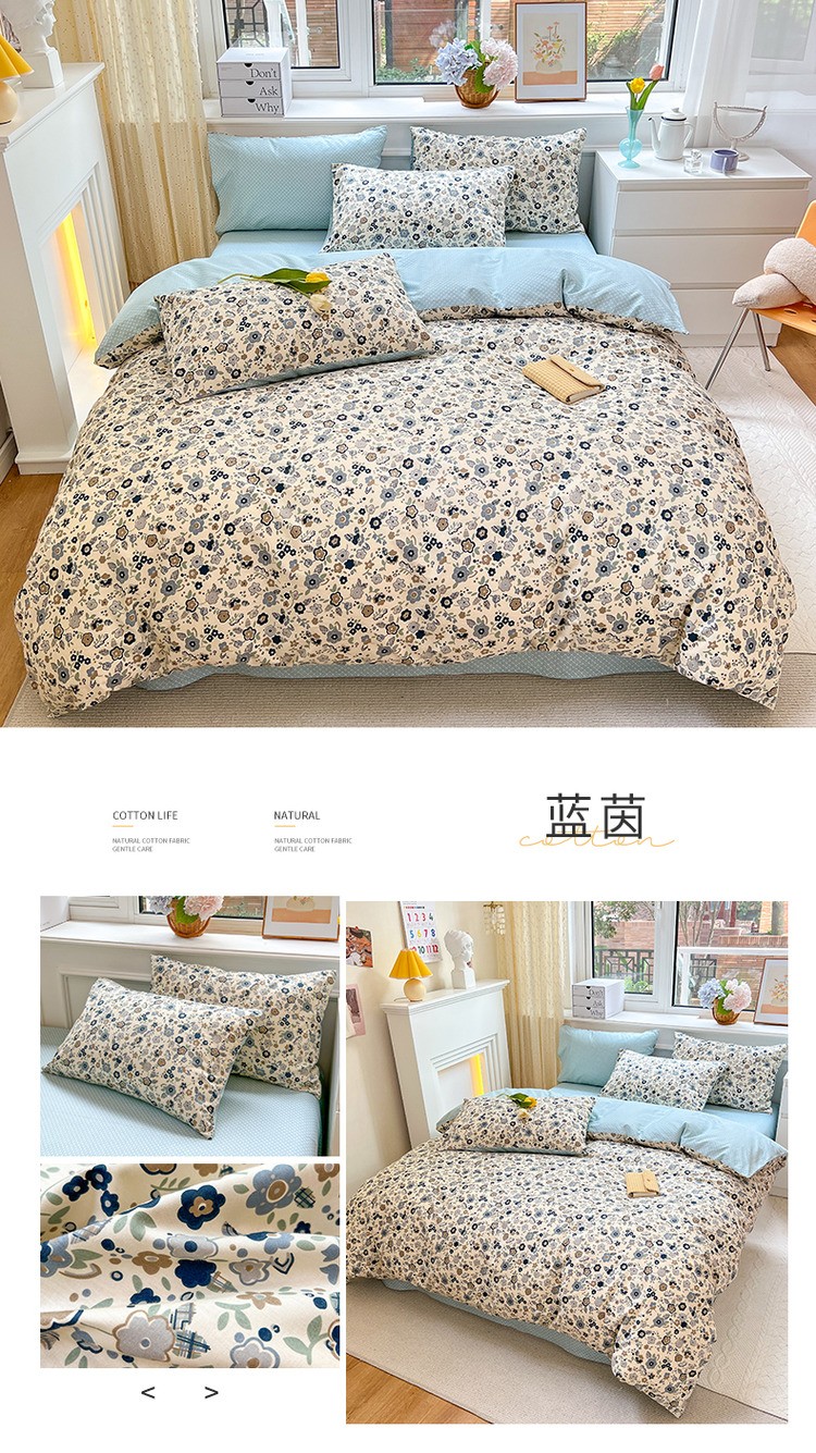 商品名称:优彩 2022全棉13372法式田园风情浪漫碎花四件套 蓝茵