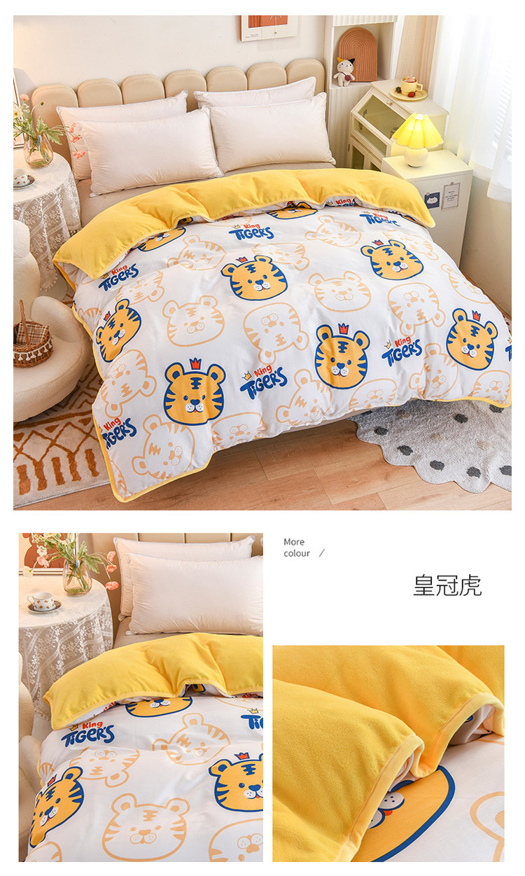 琪琪阁 2023新款A棉B绒棉加绒牛奶绒四件套单被套 快乐伙伴,快乐伙伴