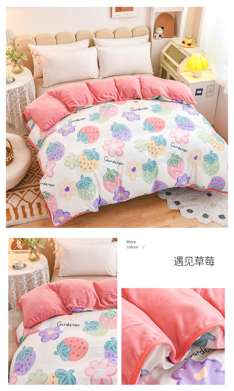 琪琪阁 2023新款A棉B绒棉加绒牛奶绒四件套单被套 笑脸草莓,笑脸草莓