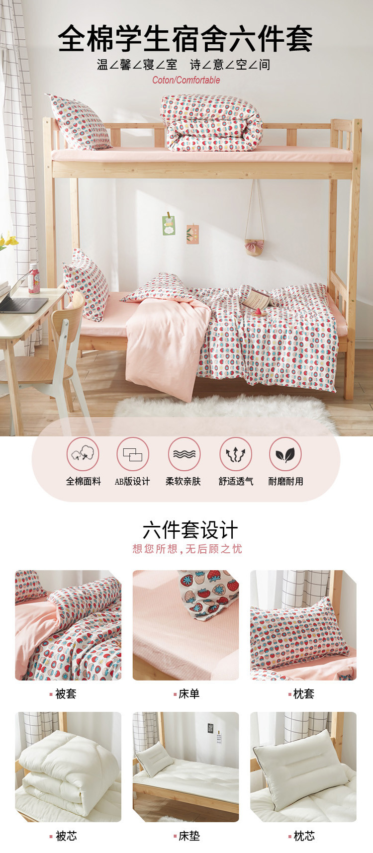 (总)怡家居 2023新款开学季全棉学生宿舍六件套