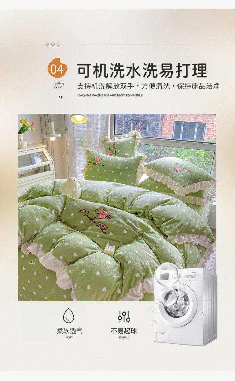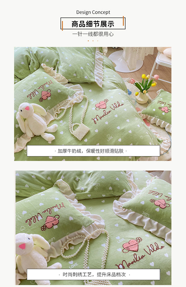 商品名称:其奥2022保暖加厚牛奶绒宝宝绒韩版公主风四件套心悦-芥绿
