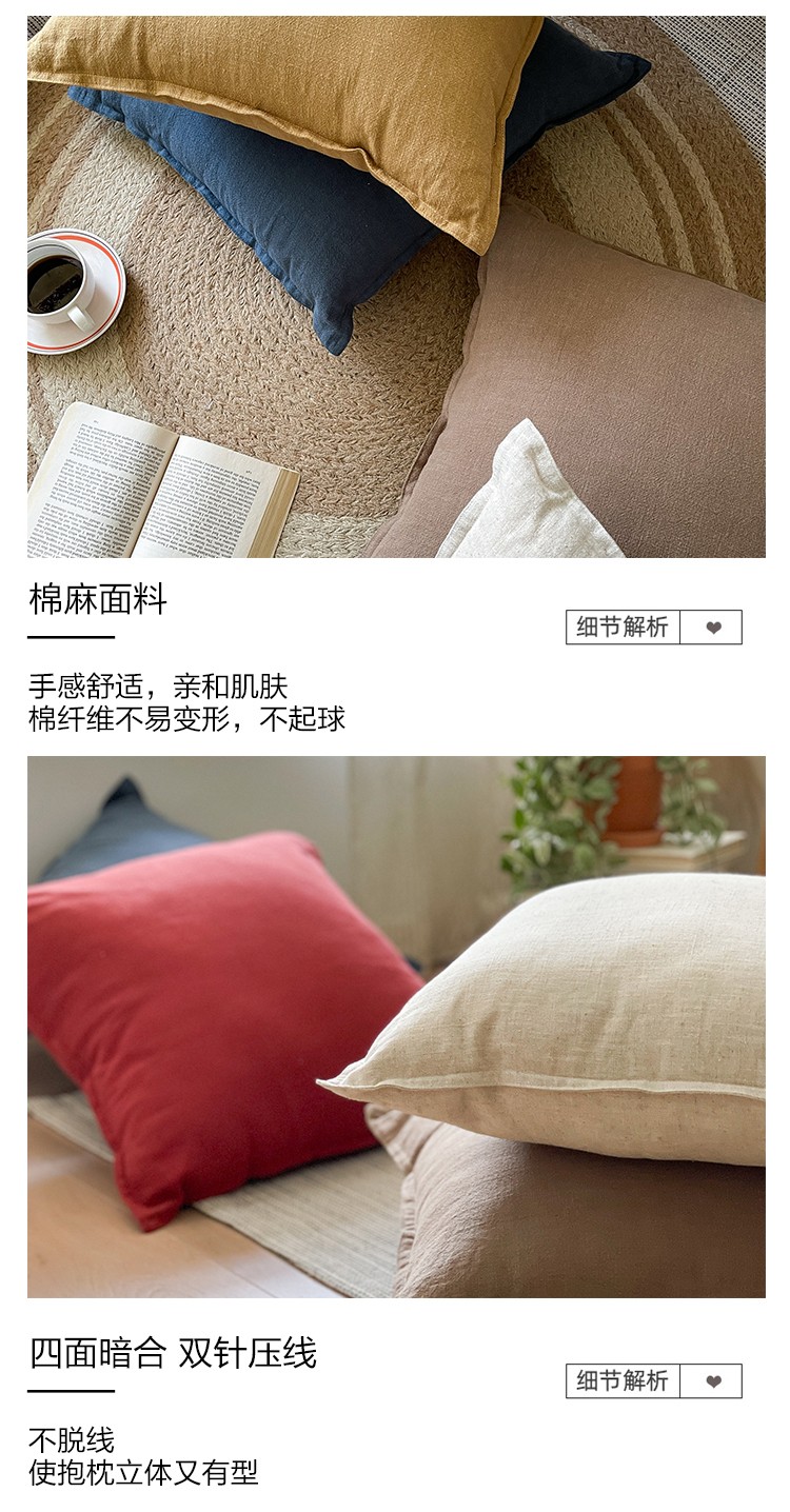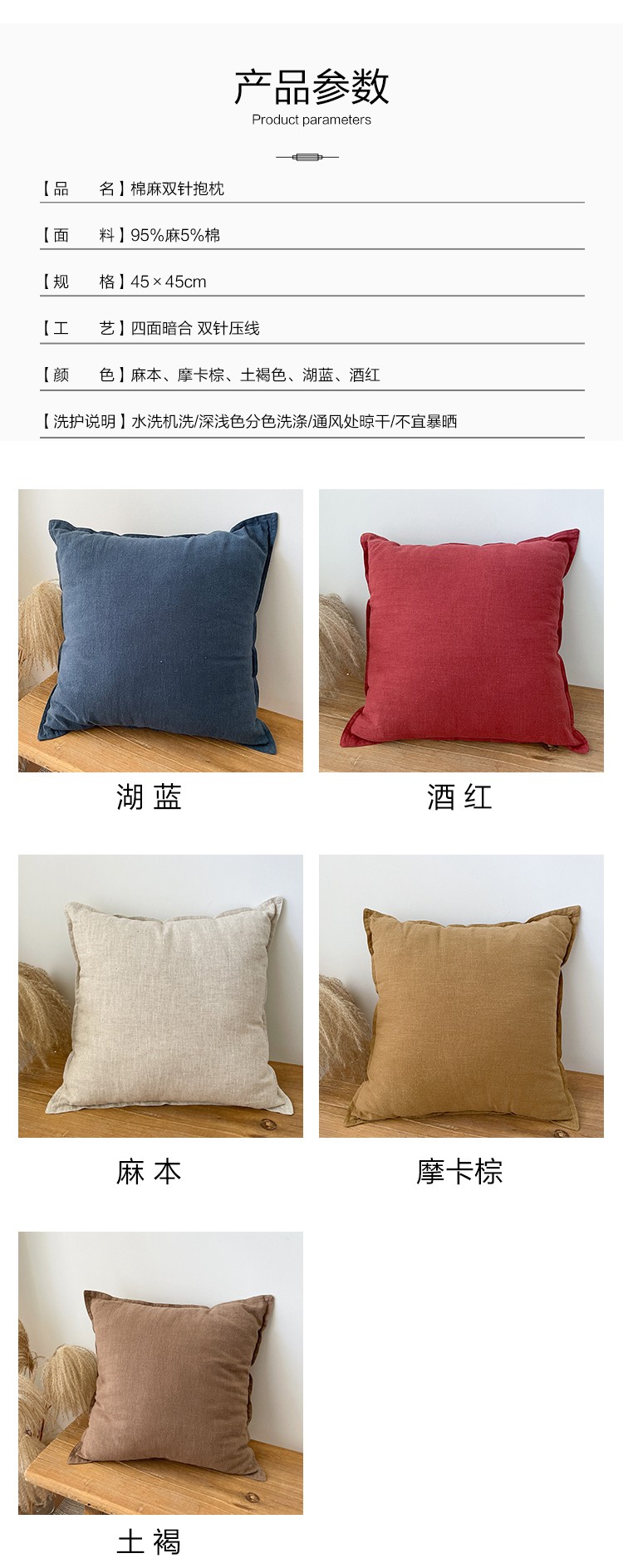 (总)美茉家居 2023新款棉麻双针抱枕,湖蓝,酒红,麻本,摩卡棕,土褐