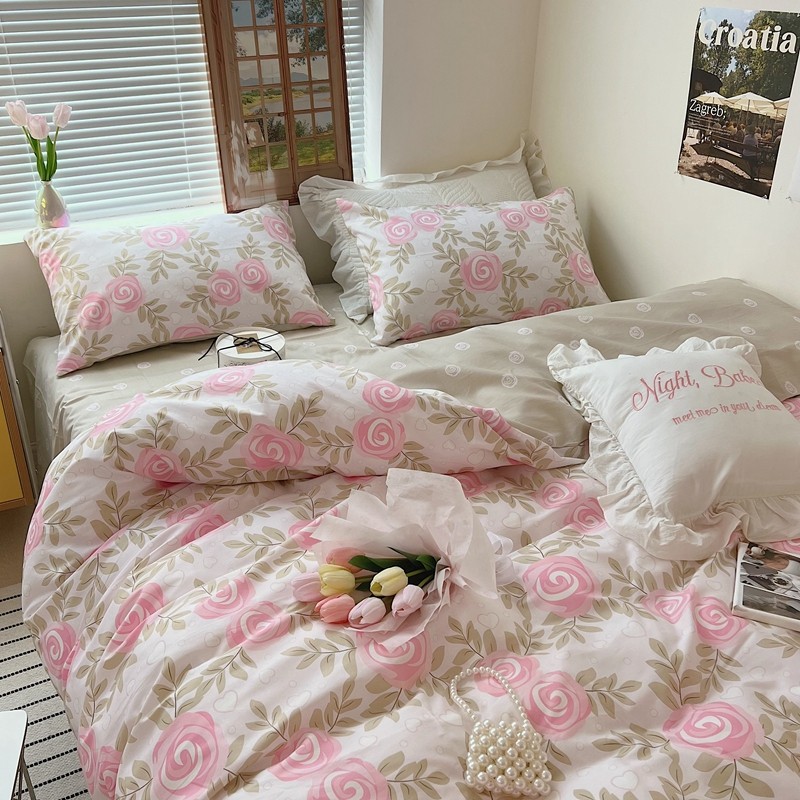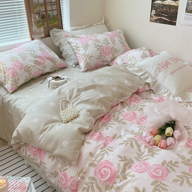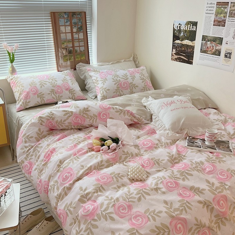 顾里家纺 2022ins韩系全棉四件套韩系花花系列 玫瑰物语