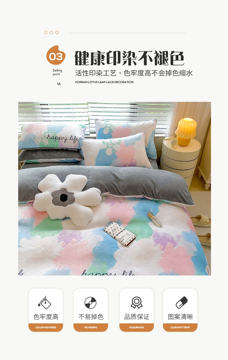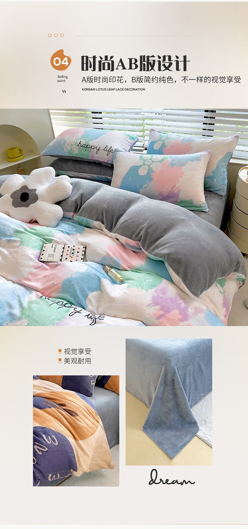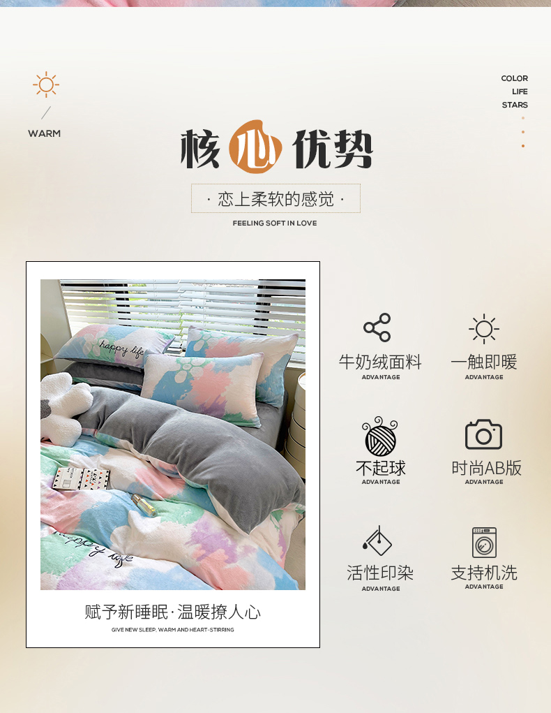 当前位置: 91家纺网 > 商品网购 > 床品套件 > 四件套 > 牛奶绒四件套 > 麦瑞家纺 2024新款水晶绒牛奶绒四件套 马卡龙