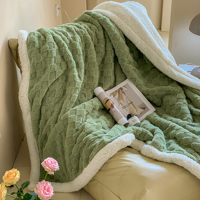 昔可家纺 2022新款ins风纯色保暖塔塔绒多功能毛毯 棋盘格绿