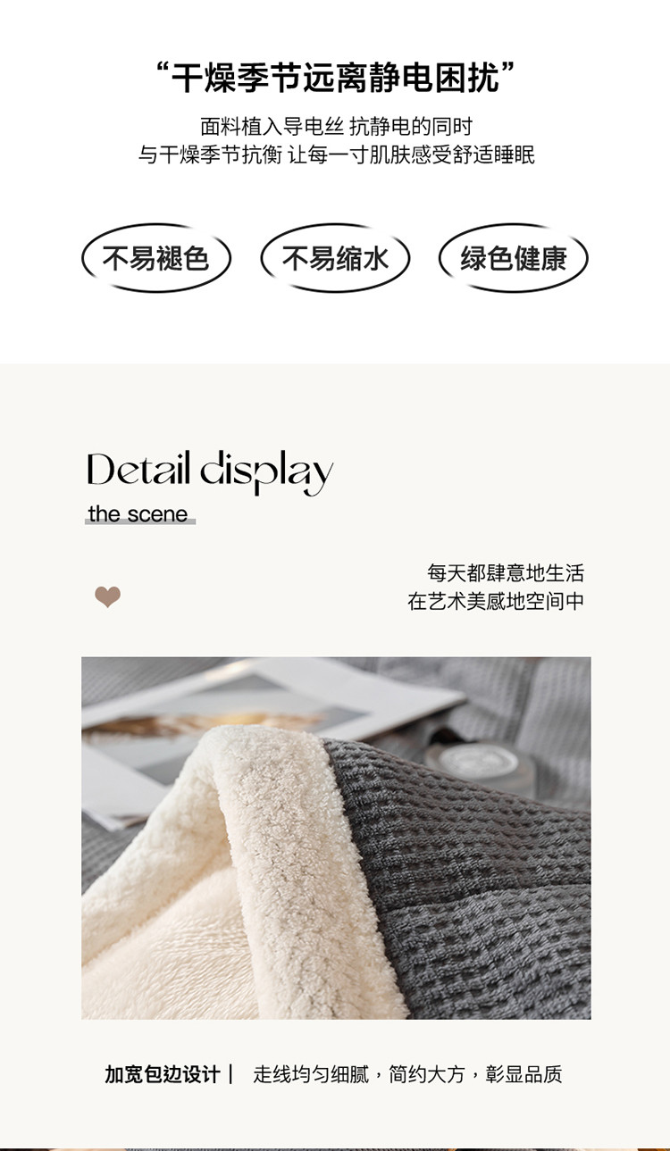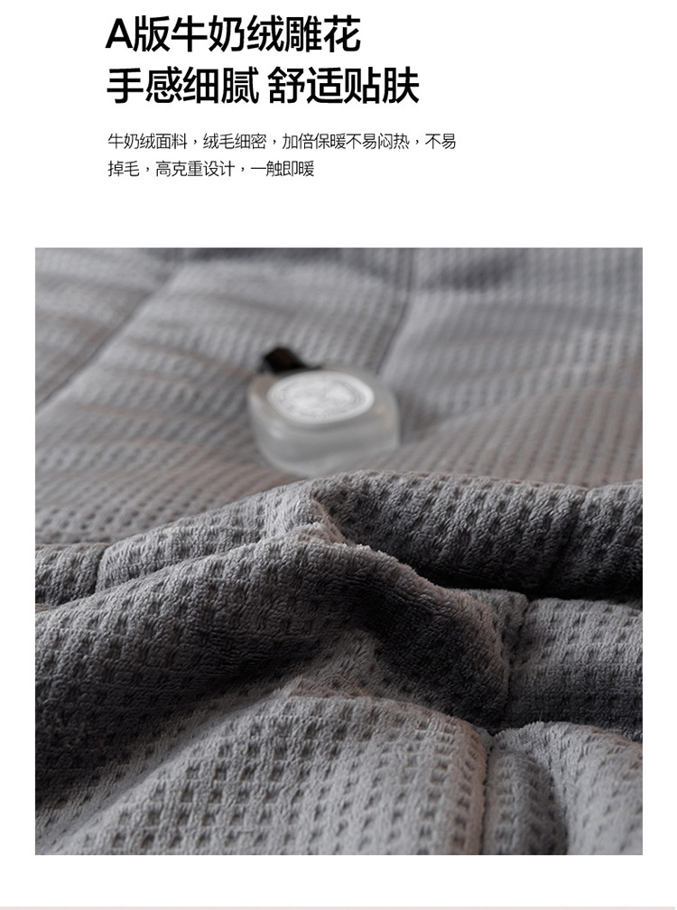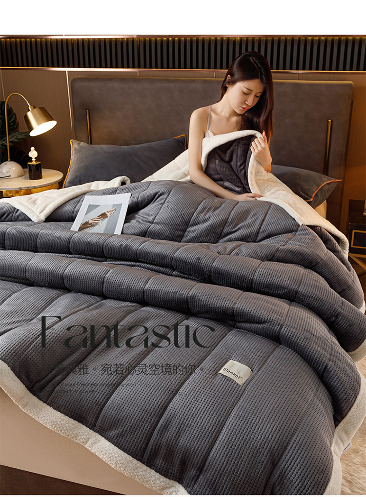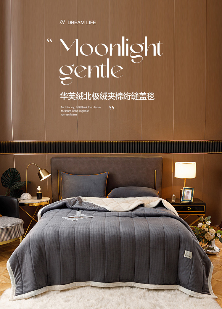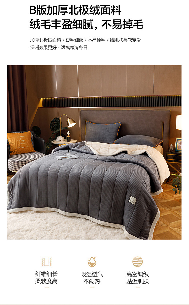 商品名称:莱登卡奴 2022新款华芙绒北极绒三层夹棉绗绣加厚毛毯盖毯 加厚款-摩登灰