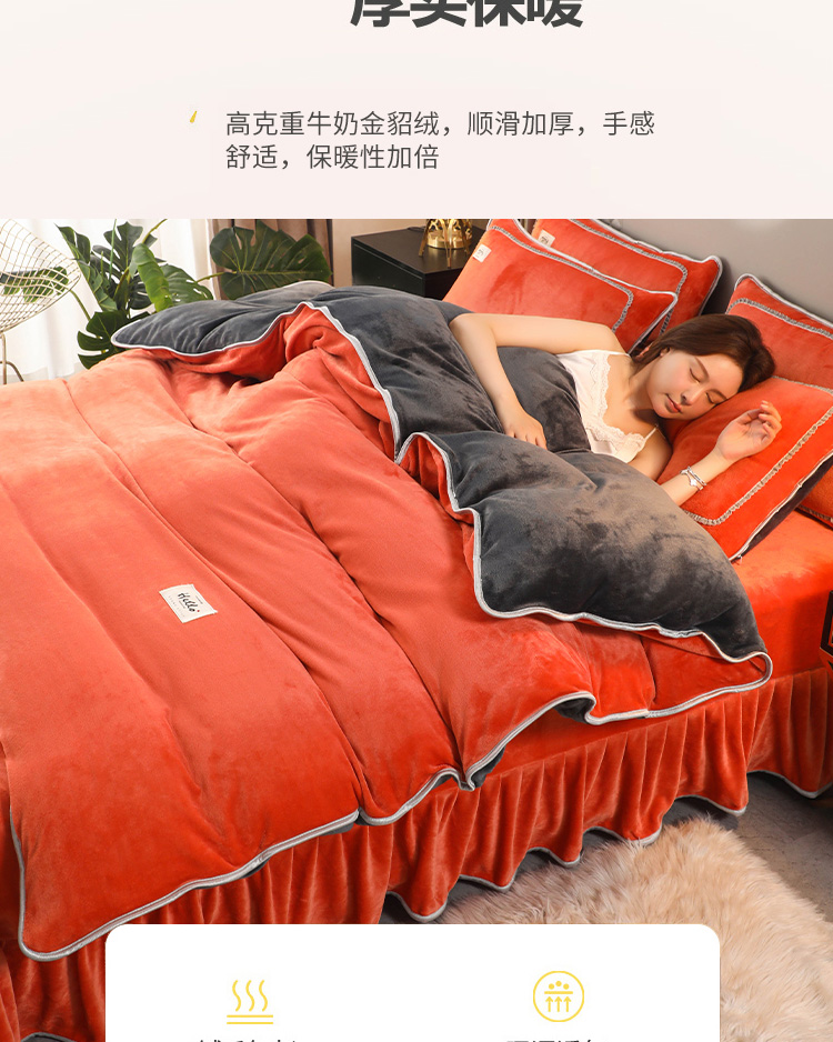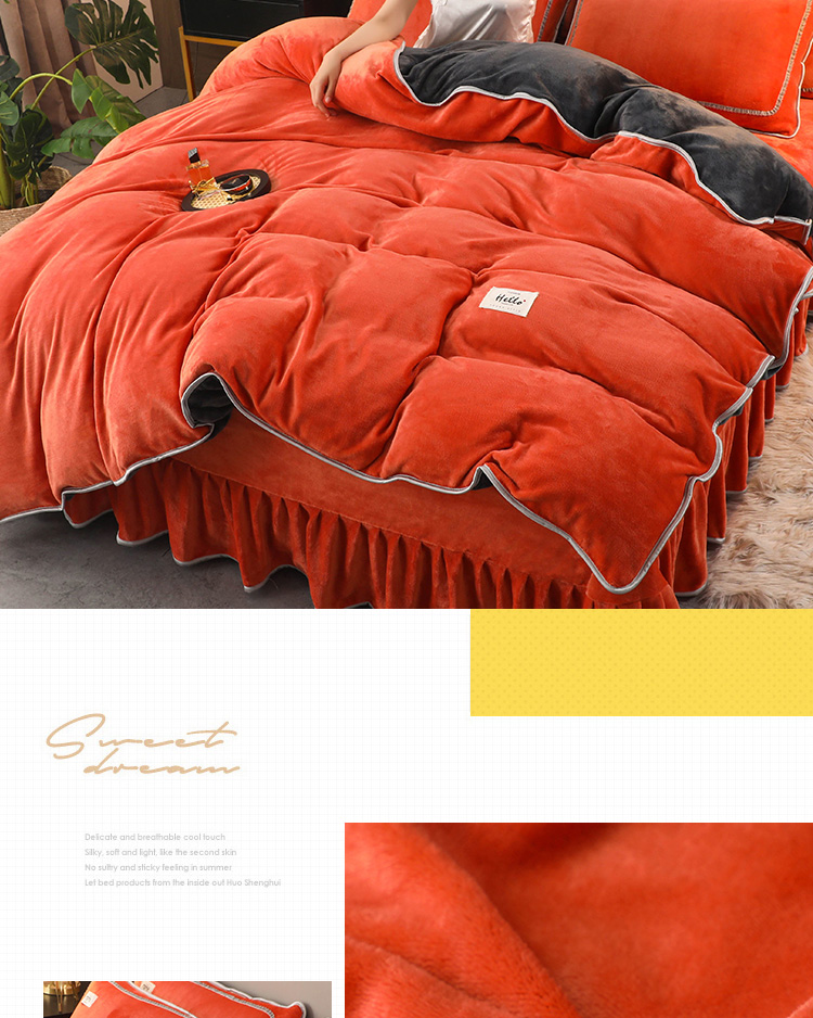 商品名称:栩裕 2023新款纯色双拼加厚牛奶绒四件套 橙色拼色