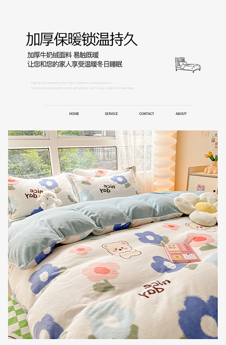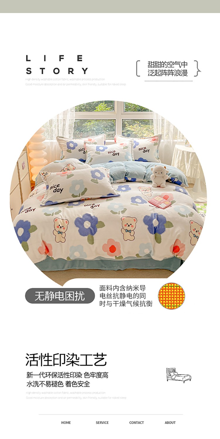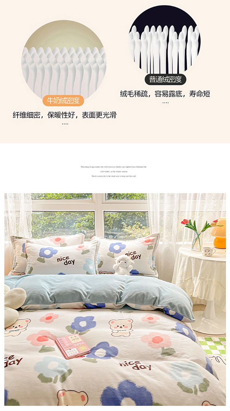 (总)慕尚家纺 2025新款豆豆绒刺绣四件套,大耳狗 白蓝,玫瑰 白粉