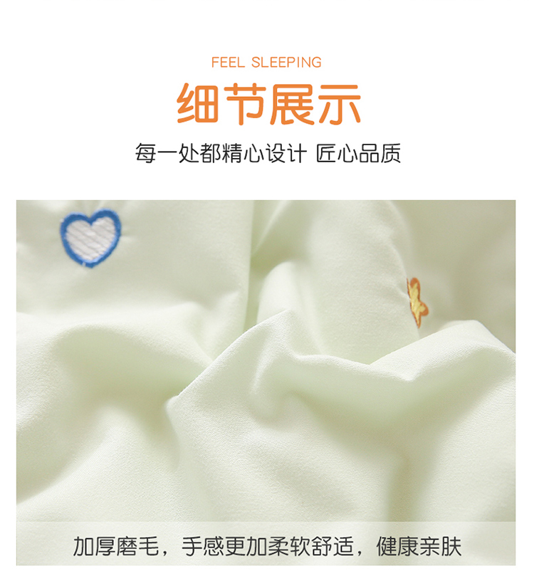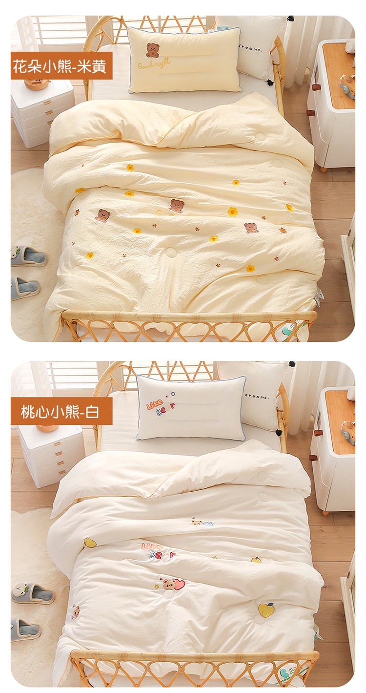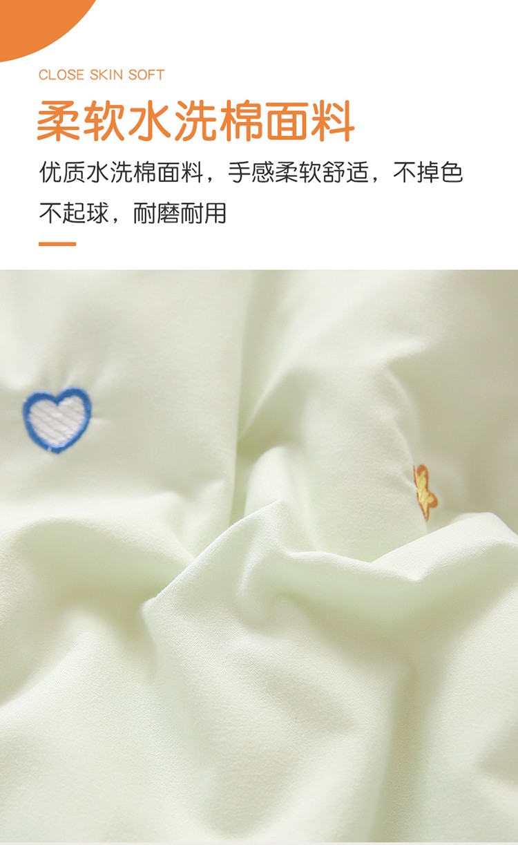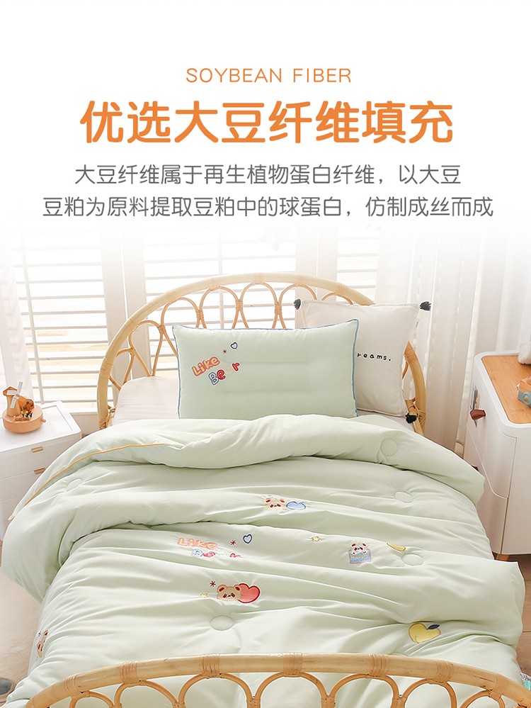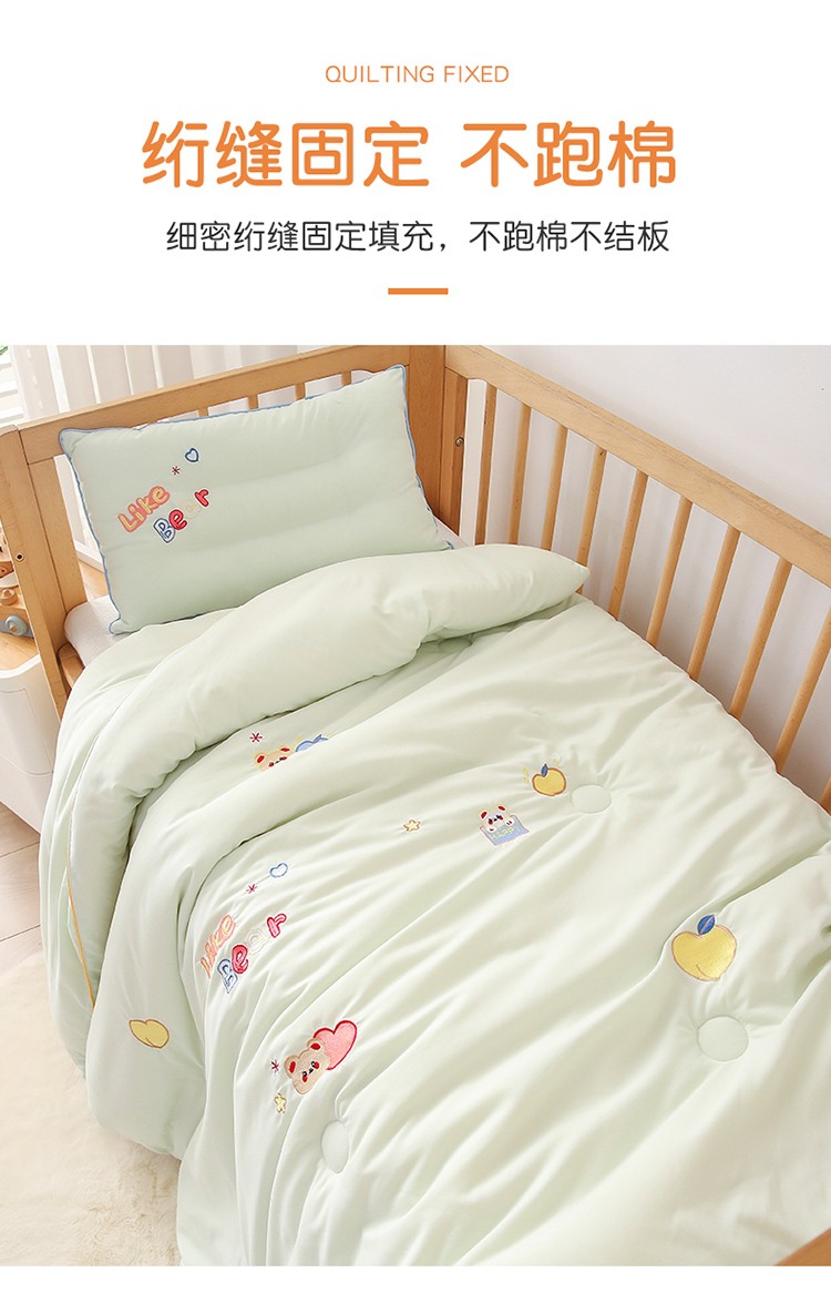 商品名称:A类水洗棉磨毛绣花款幼儿园冬被大豆儿童春秋被芯宝宝午睡被子 桃心小熊-绿