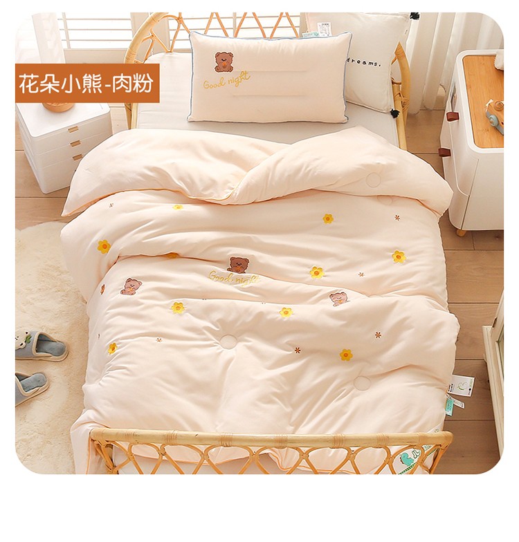 A类水洗棉磨毛绣花款幼儿园冬被大豆儿童春秋被芯宝宝午睡被子 桃心小熊-绿