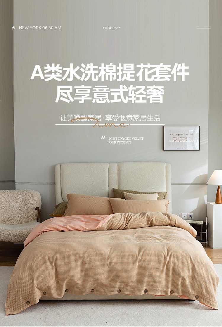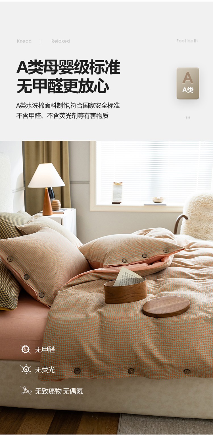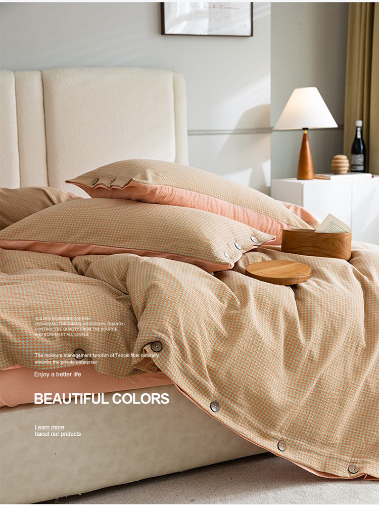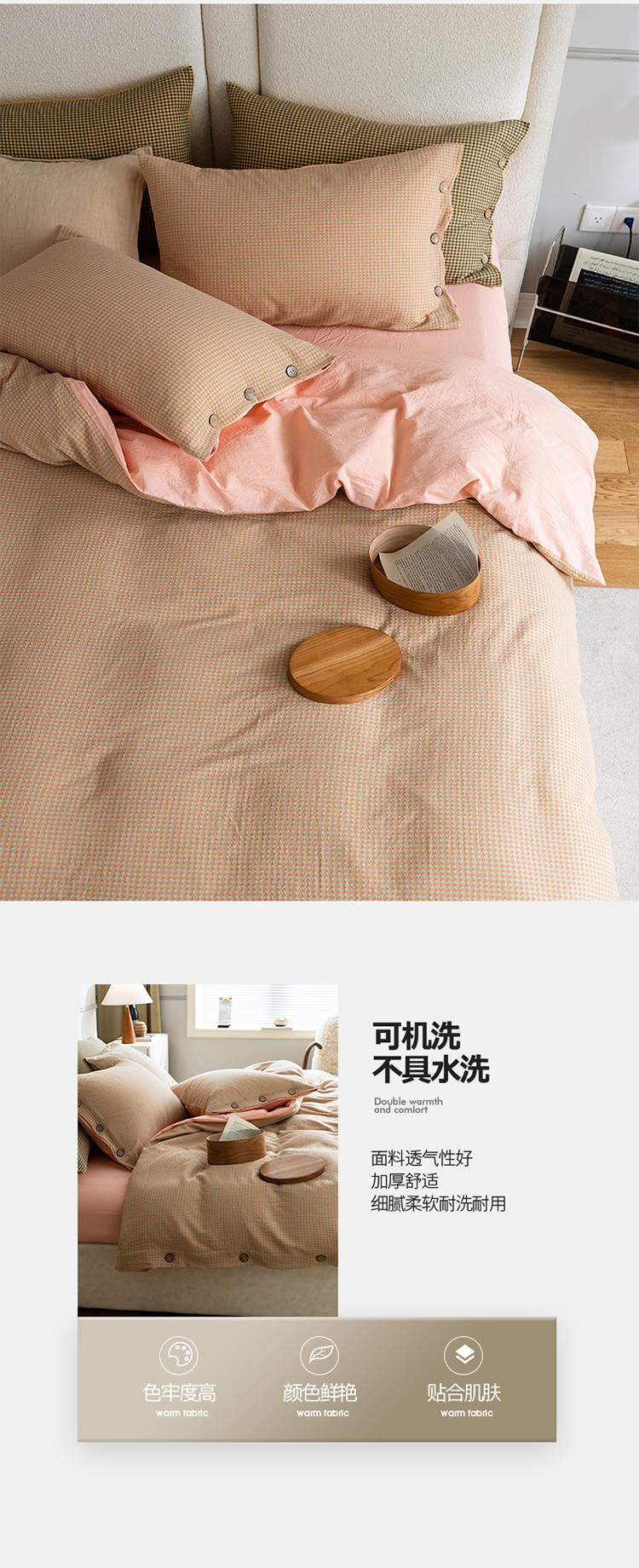 当前位置: 91家纺网 > 商品网购 > 床品套件 > 四件套 > 提花四件套 > 寐眠2022新款A类水洗棉千鸟格提花系列四件套 千鸟格粉
