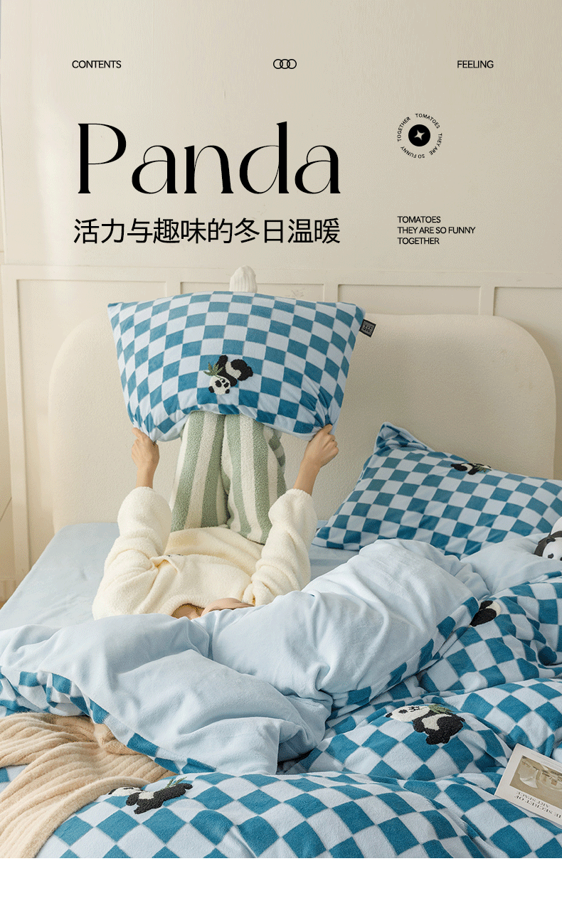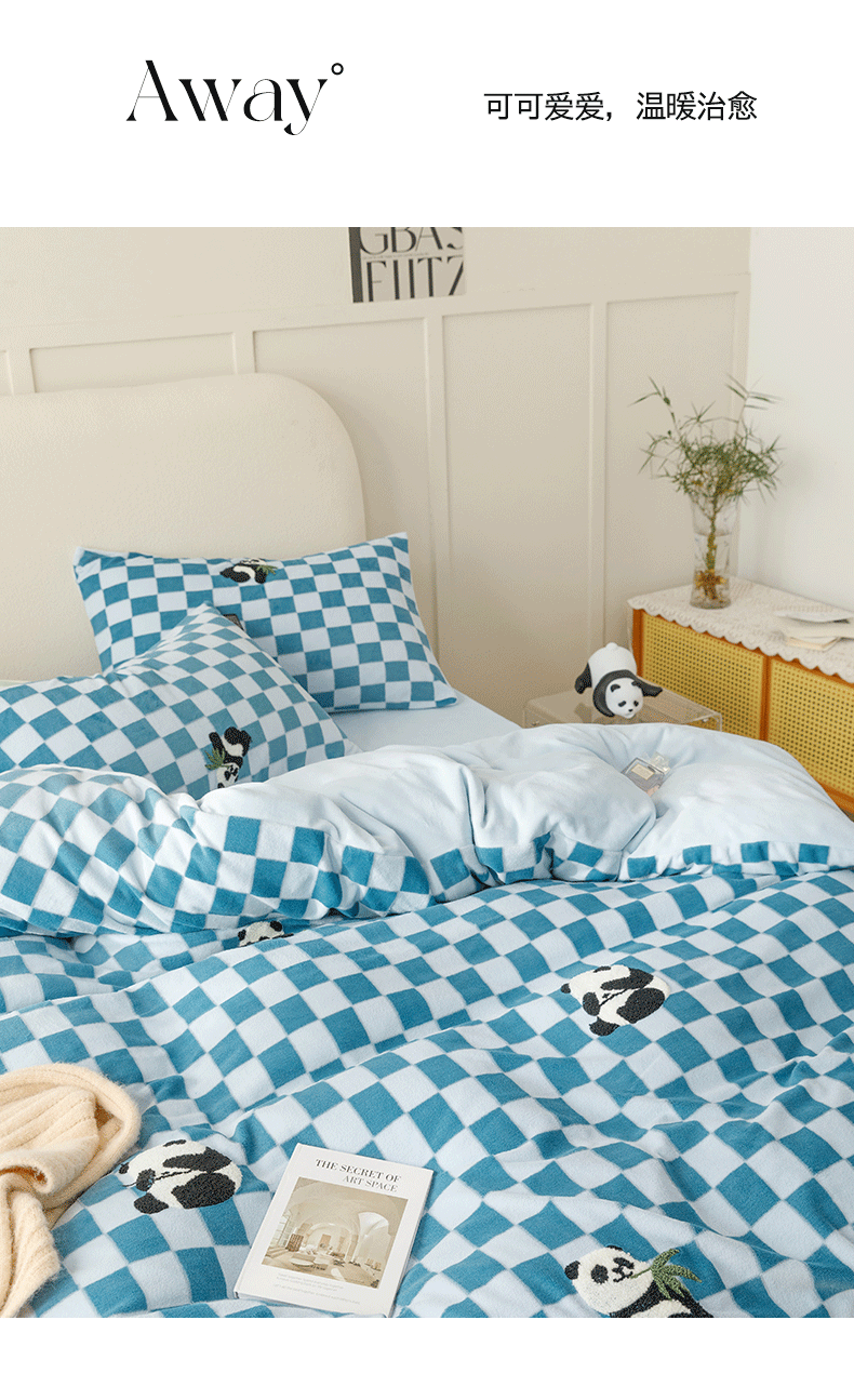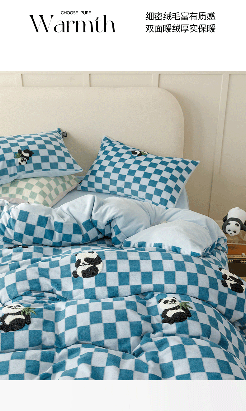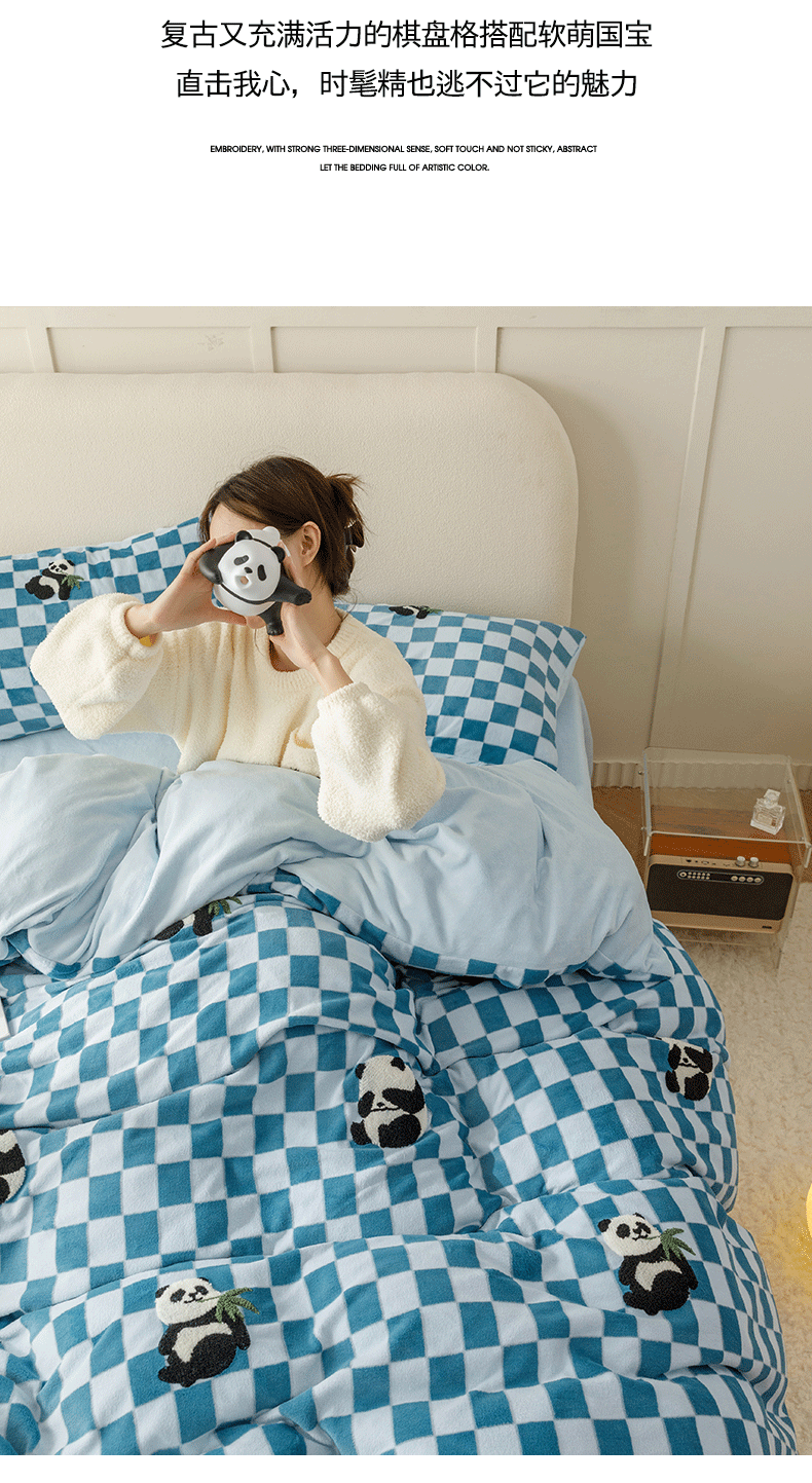 2022锦芙牛奶绒250克全消光绣花四件套,情绪熊猫-白竹