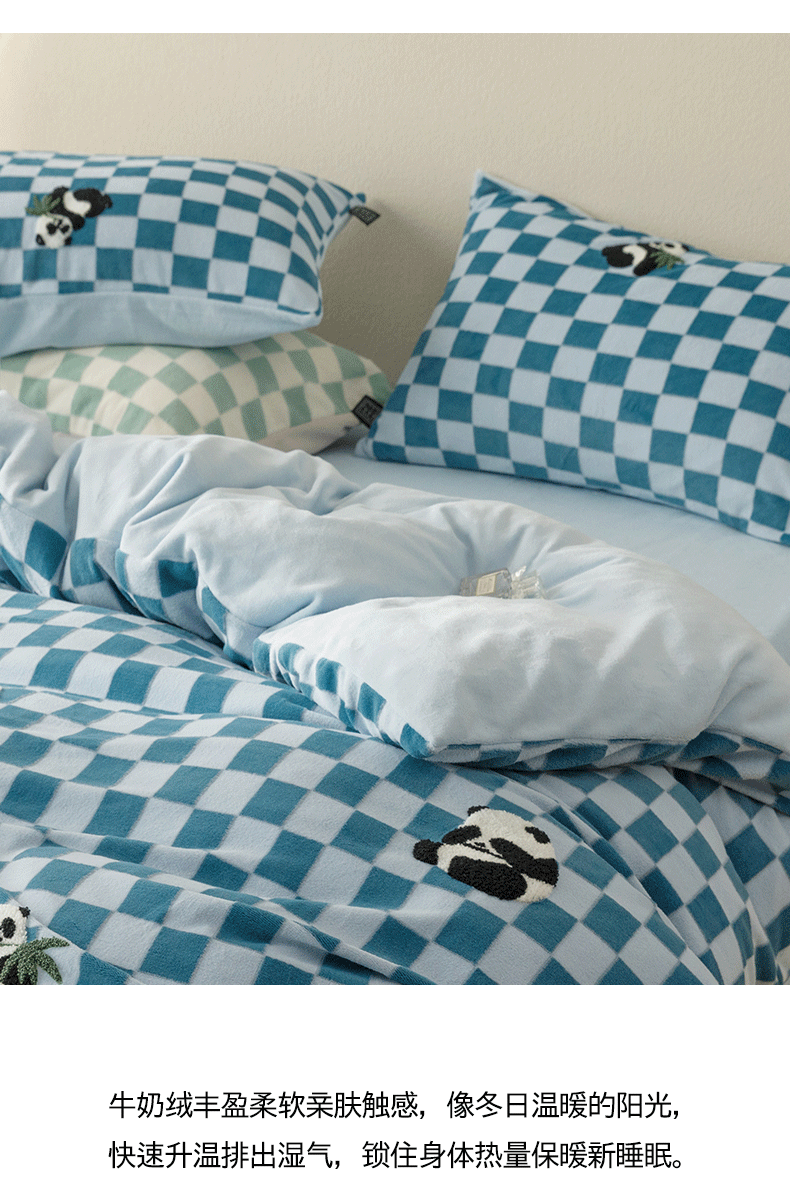 2022锦芙牛奶绒250克全消光绣花四件套,情绪熊猫-绿竹