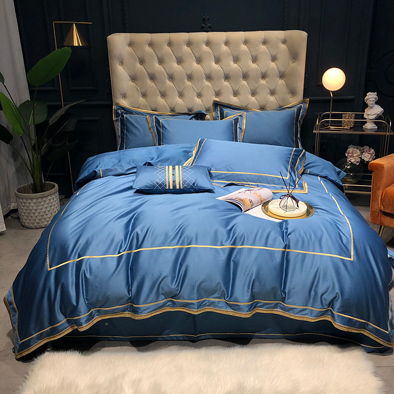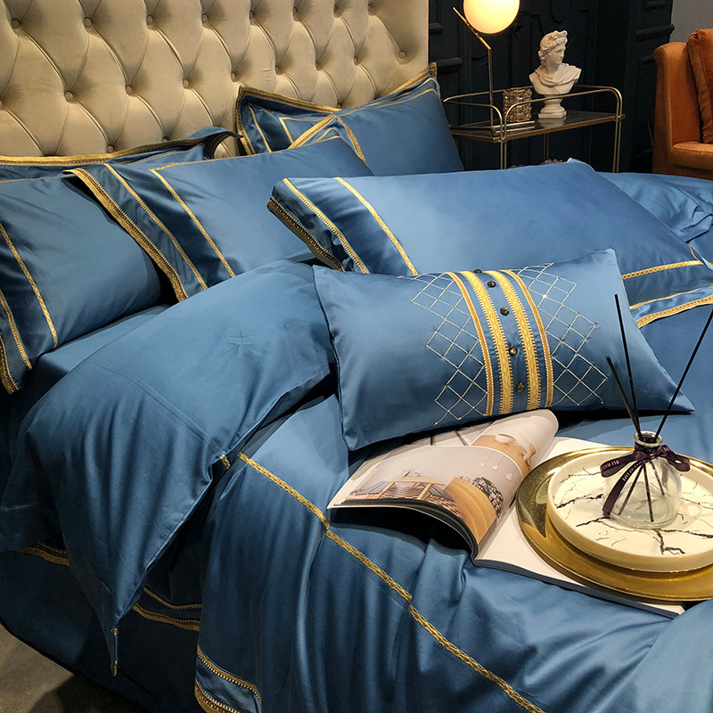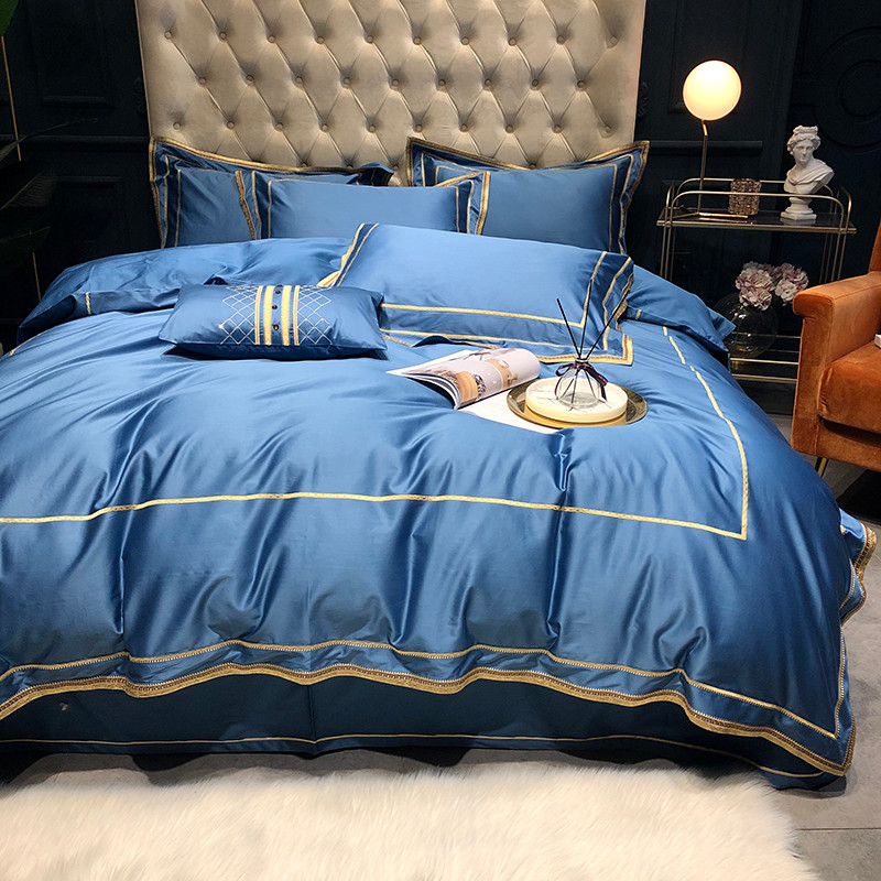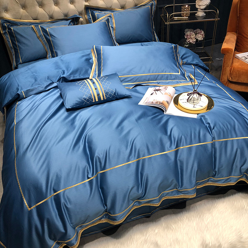 商品名称:馨蕊 2022新款100支莫兰迪刺绣全棉四件套 浅石蓝