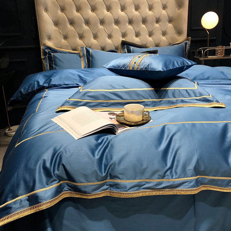馨蕊 2022新款100支莫兰迪刺绣全棉四件套 浅石蓝