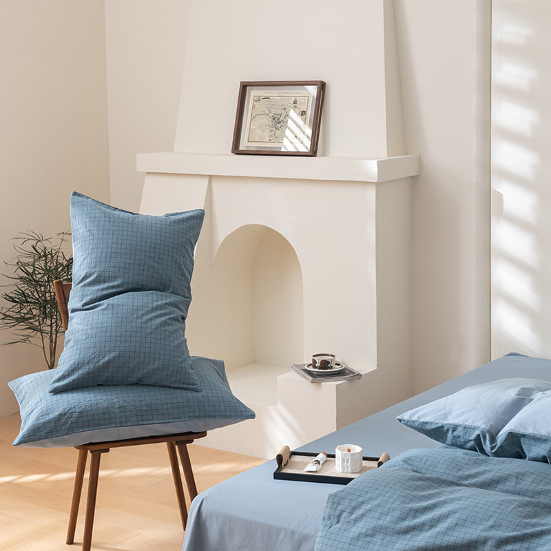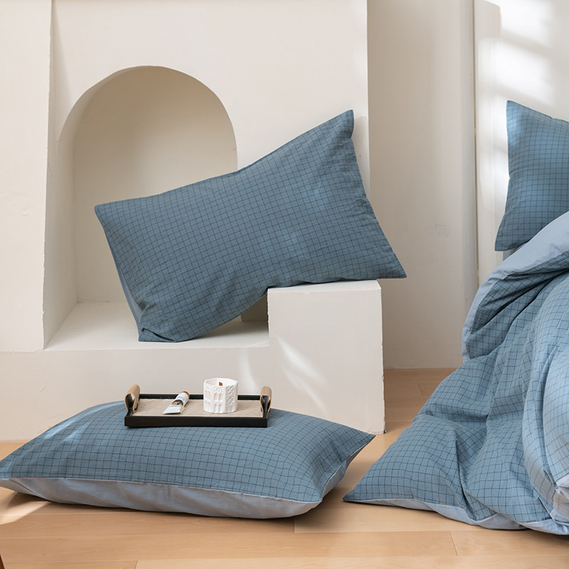 商品名称:柠馨 2023新款全棉色织水洗棉单品枕套 蓝小格