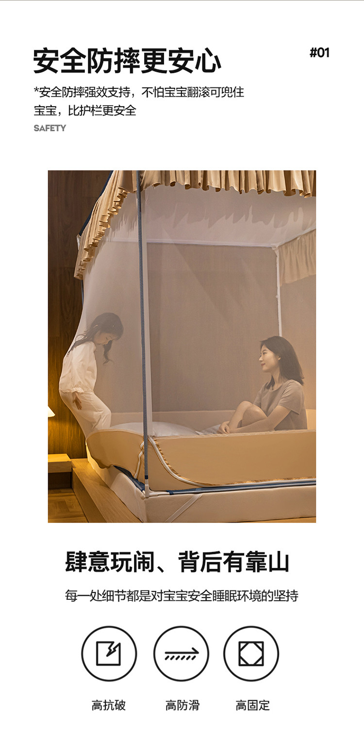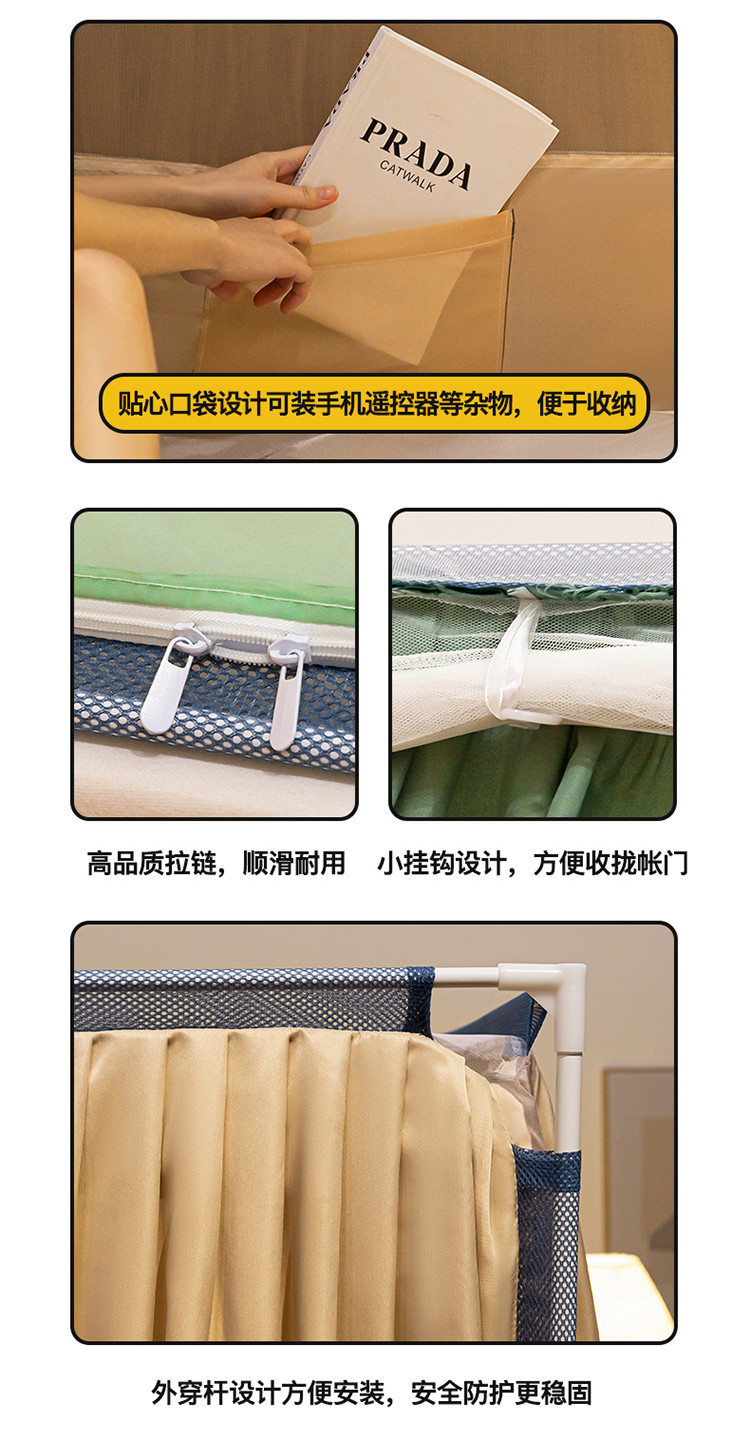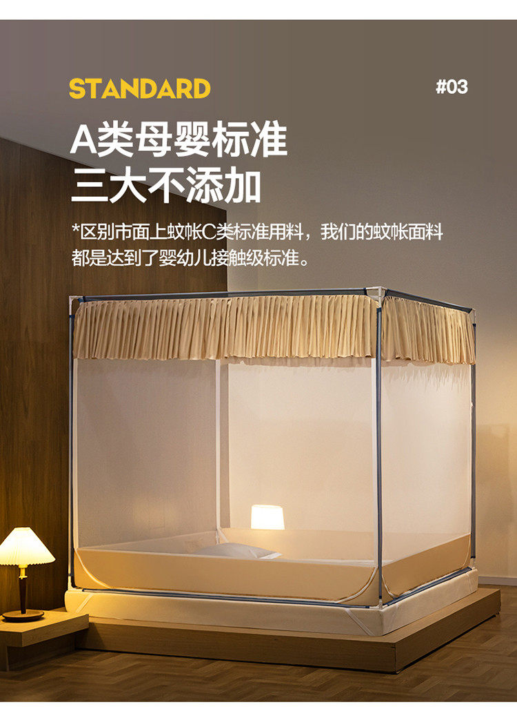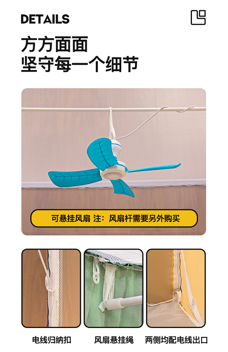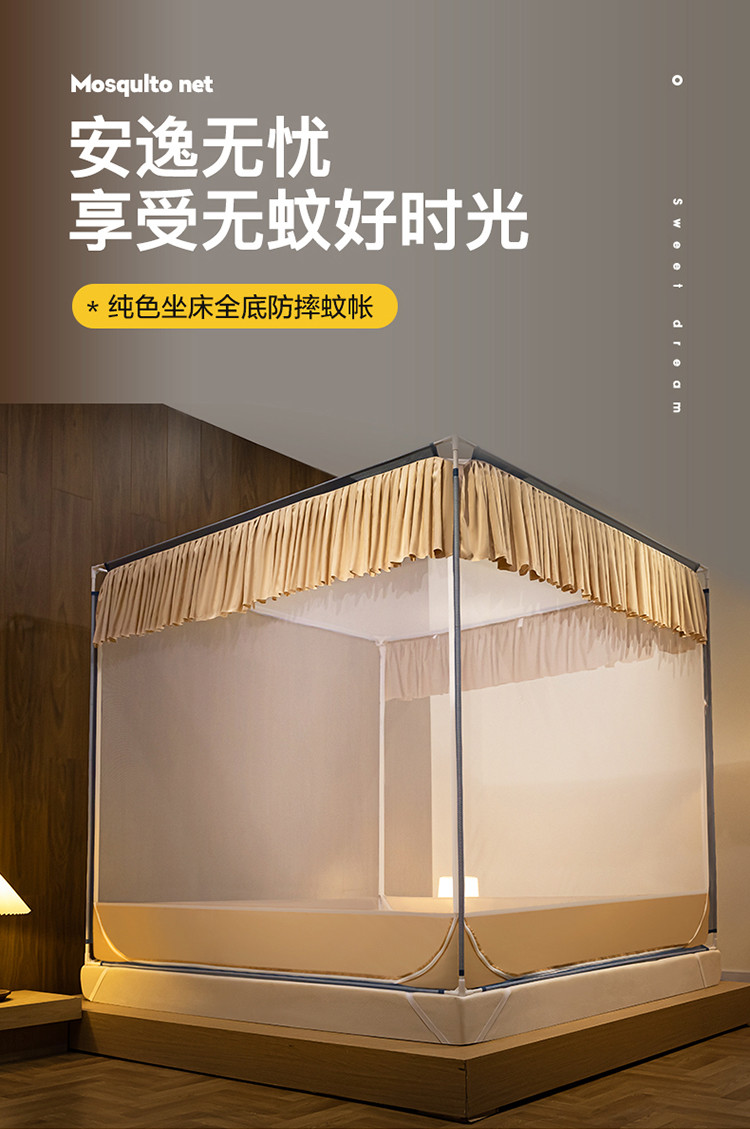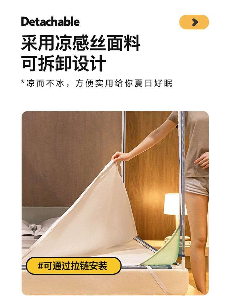商品名称:青竹苑 2023纯色可拆洗冰丝凉席外穿三门全底防摔蚊帐 奶油黄