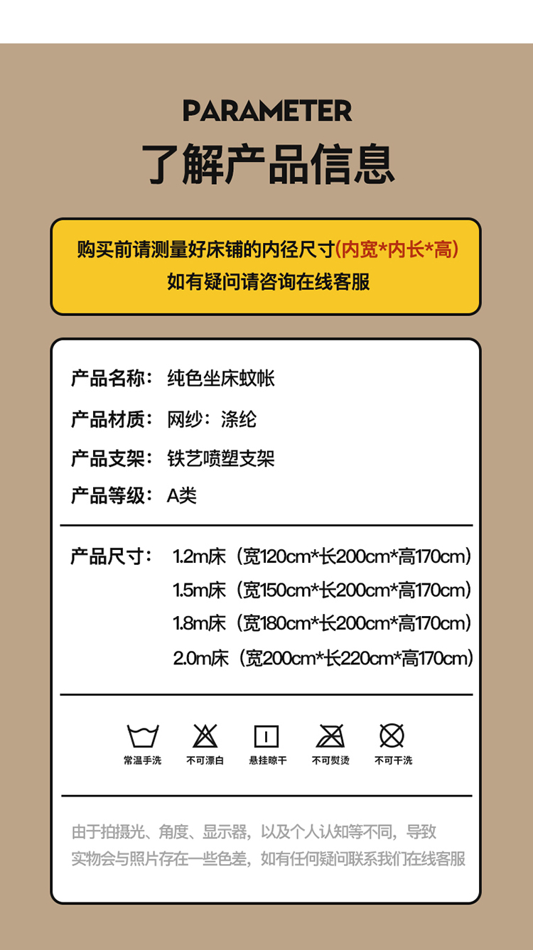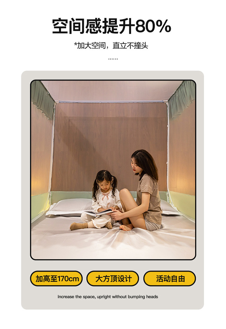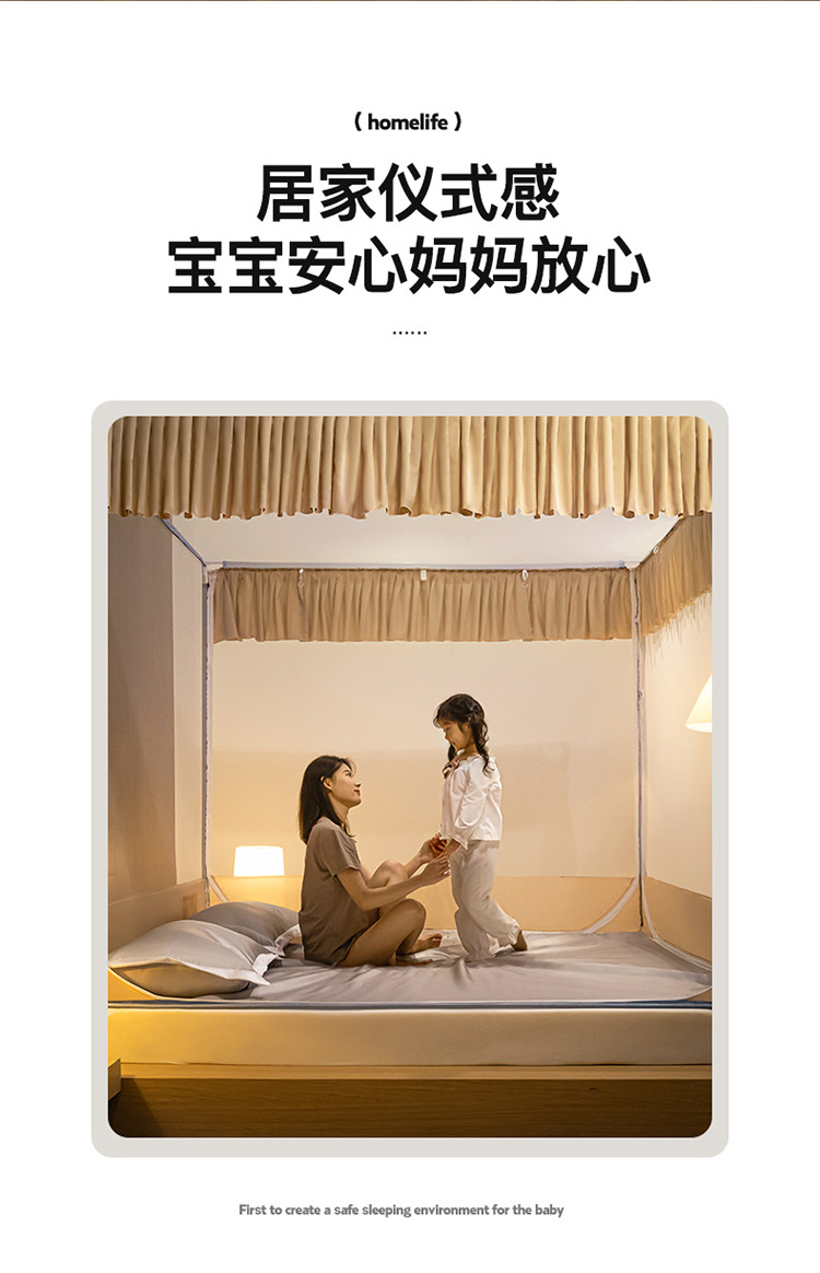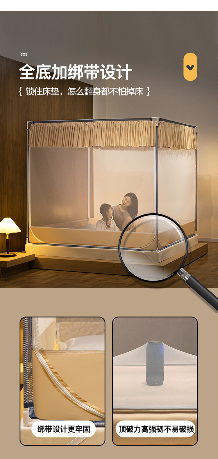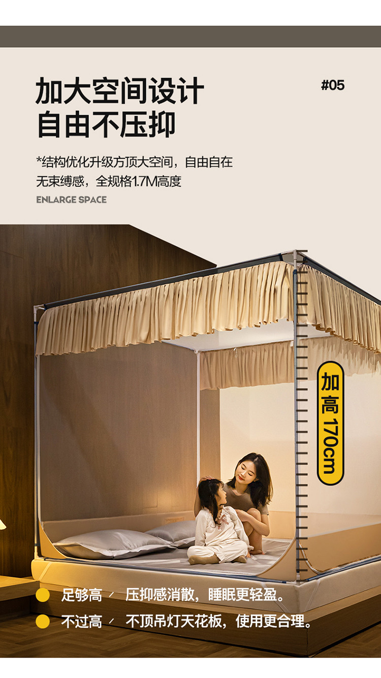 商品名称:青竹苑 2023纯色可拆洗冰丝凉席外穿三门全底防摔蚊帐 奶油黄