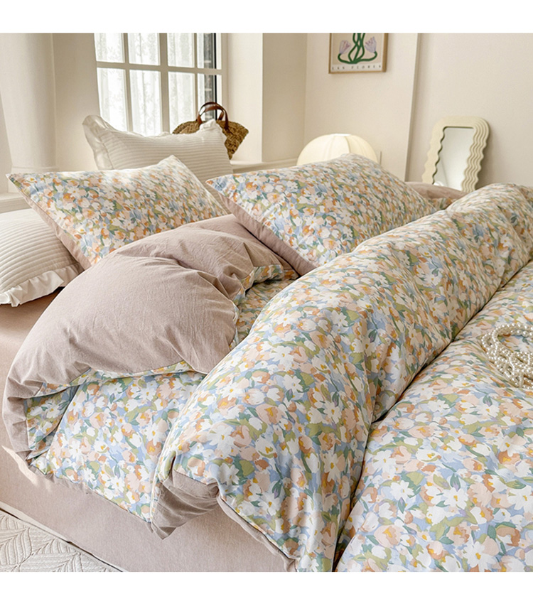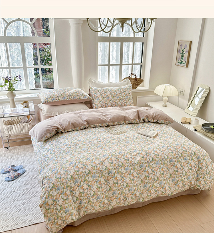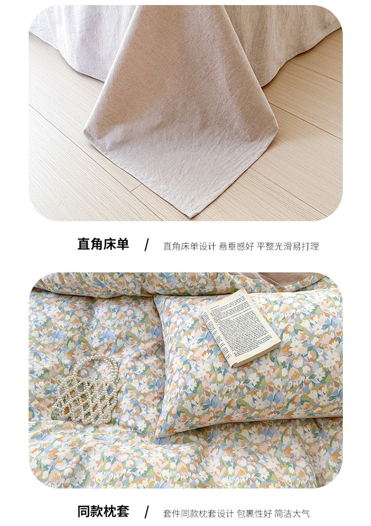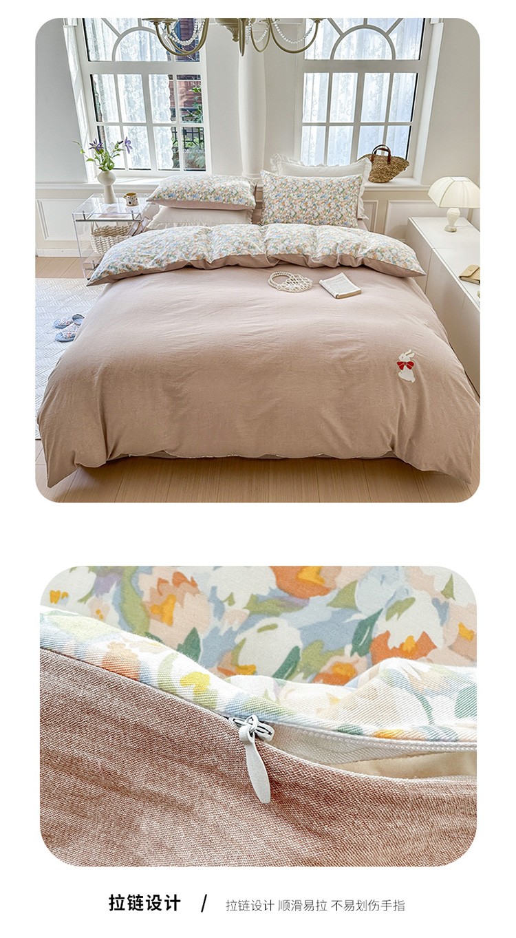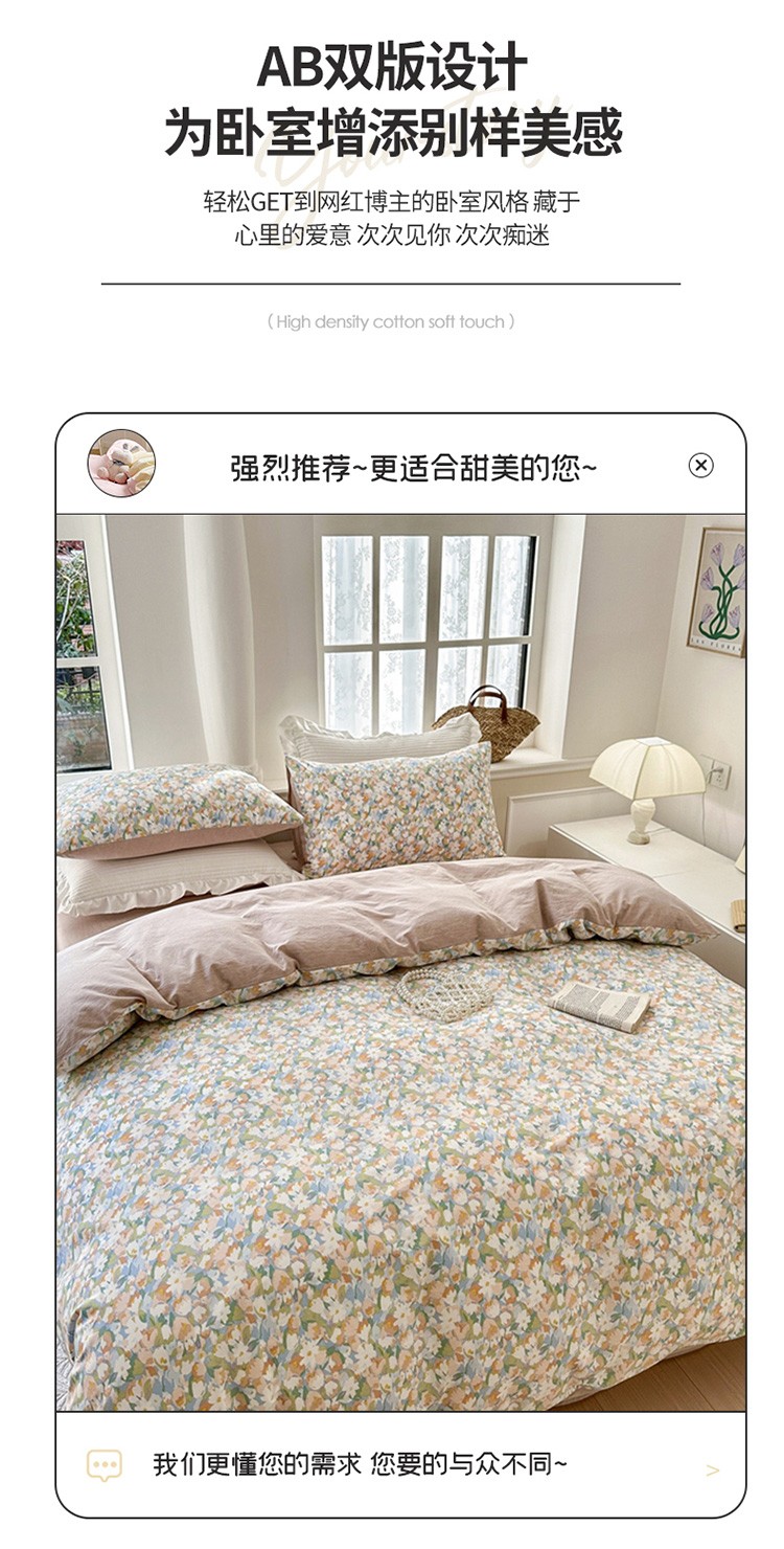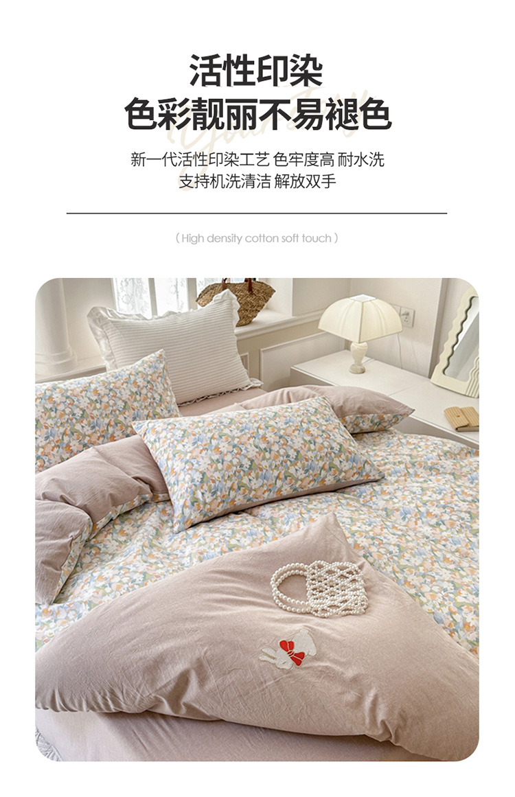 商品名称:嘉汀兰 2023新款被套AB两用全棉水洗棉印花绣花四件套 浪漫春天