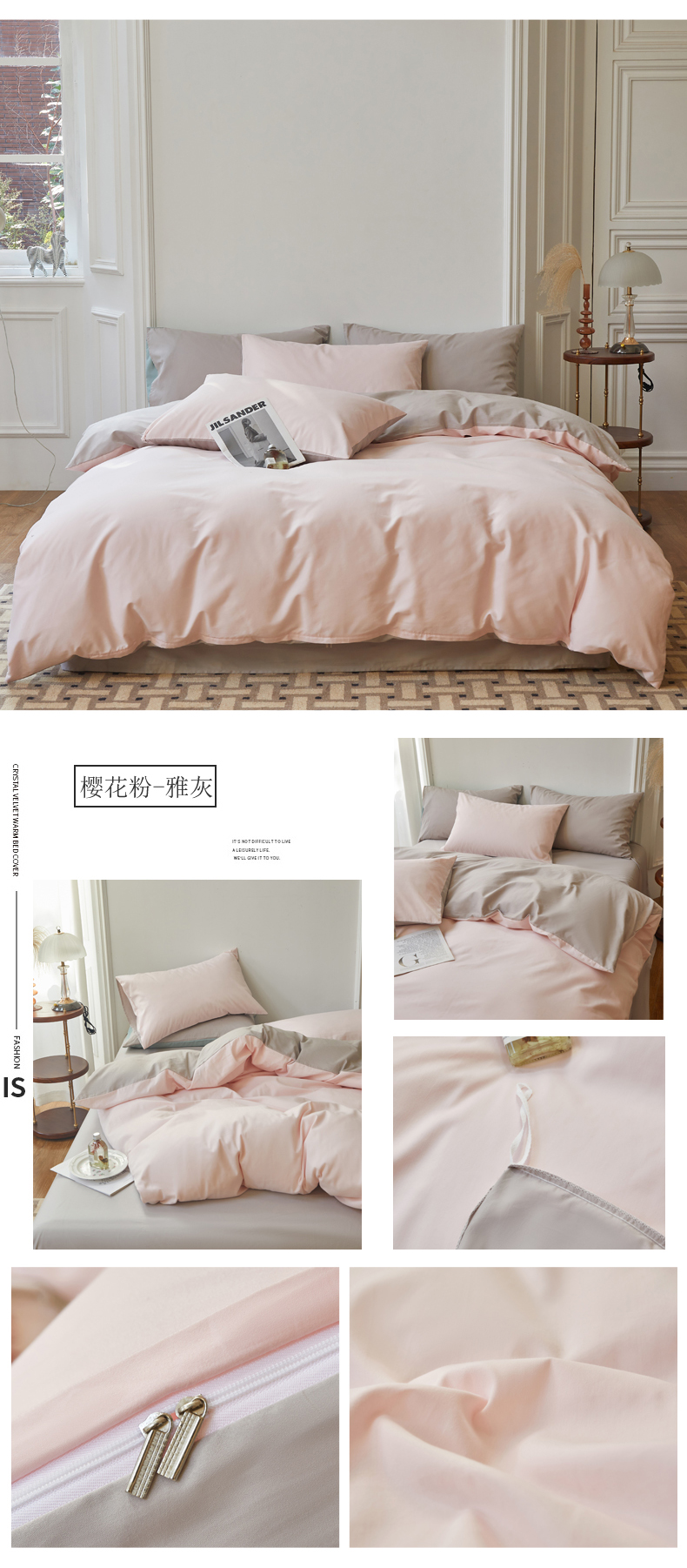 商品名称:怡家居 2023新款全棉100支磨毛四件套 樱花粉雅灰