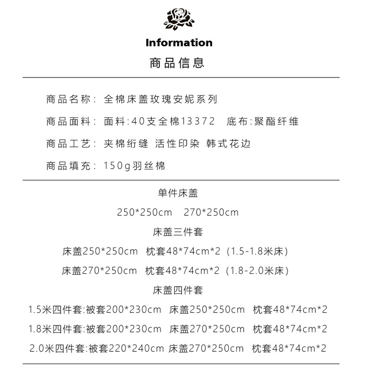 被套200*230cm床盖250*250cm四件套 | ¥235.00 |