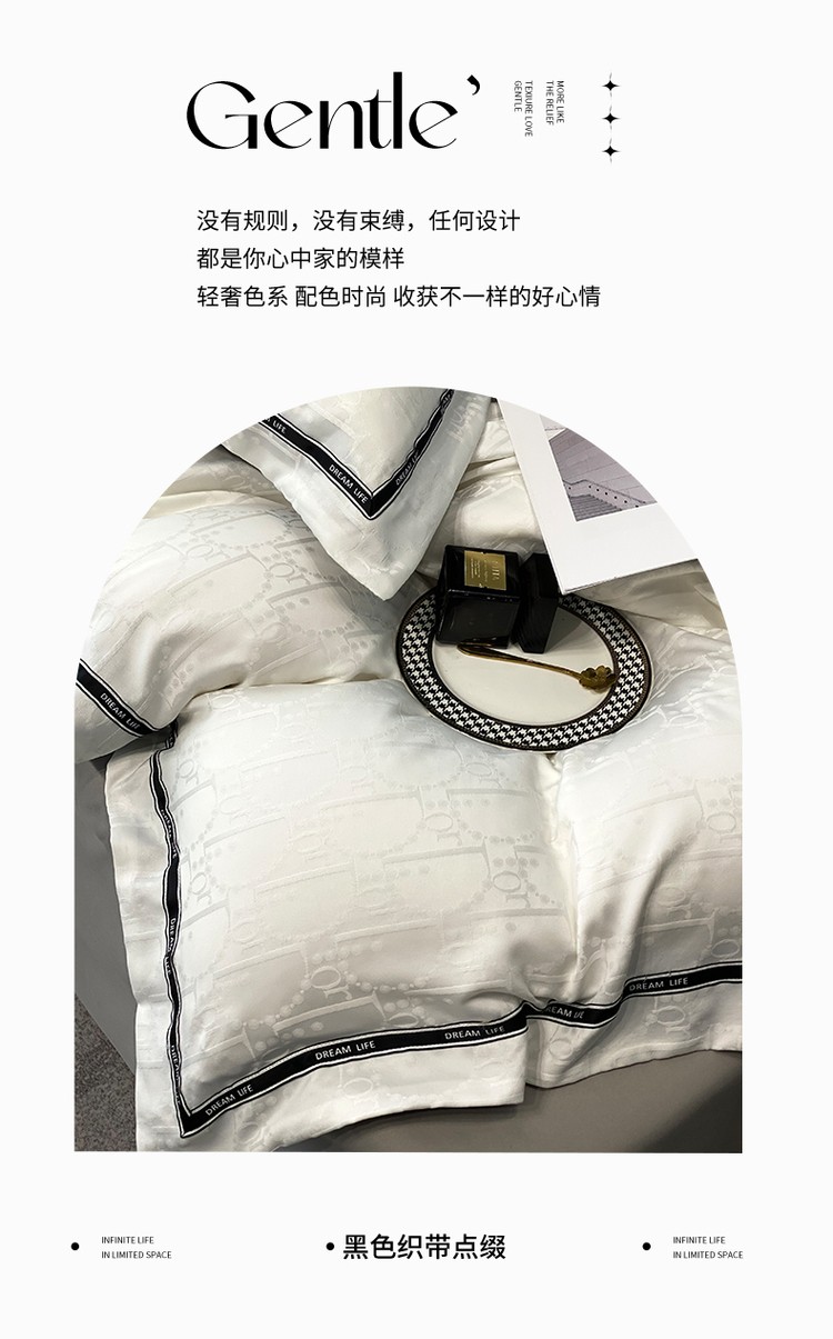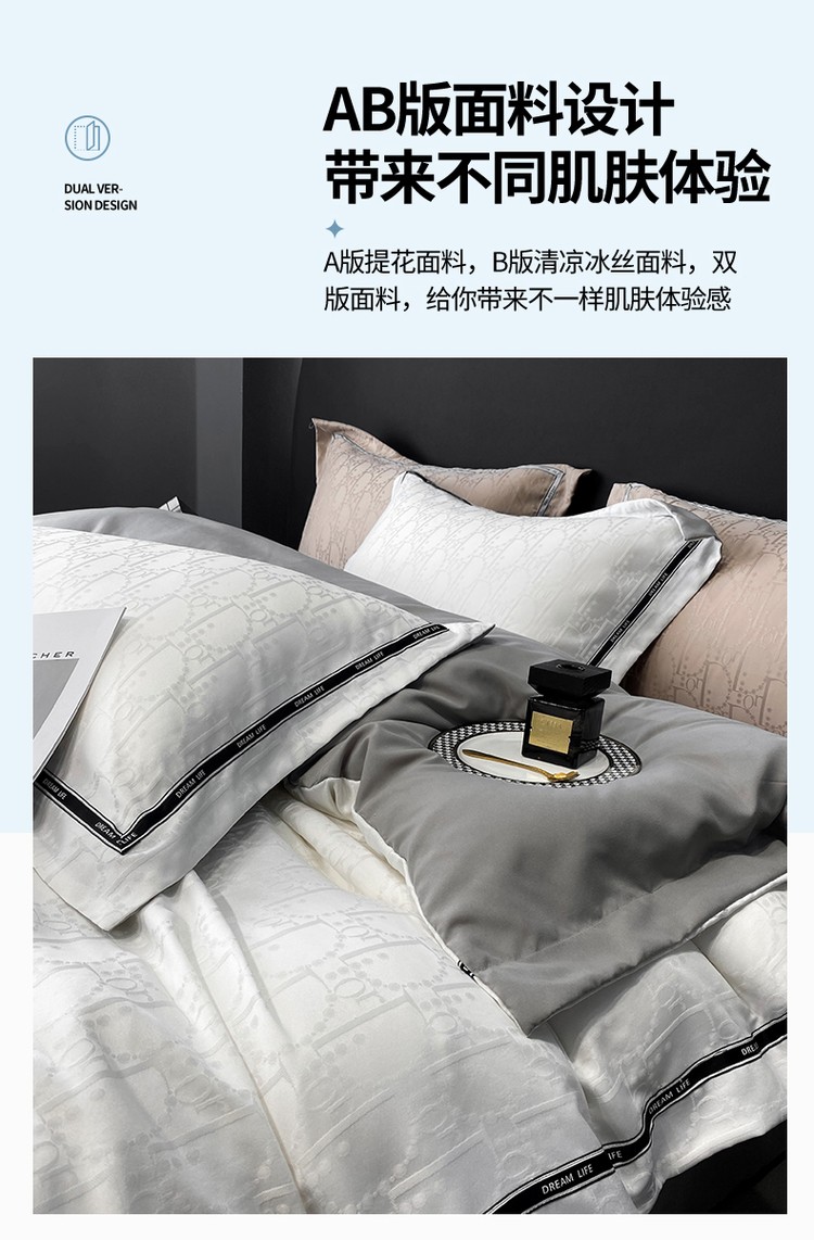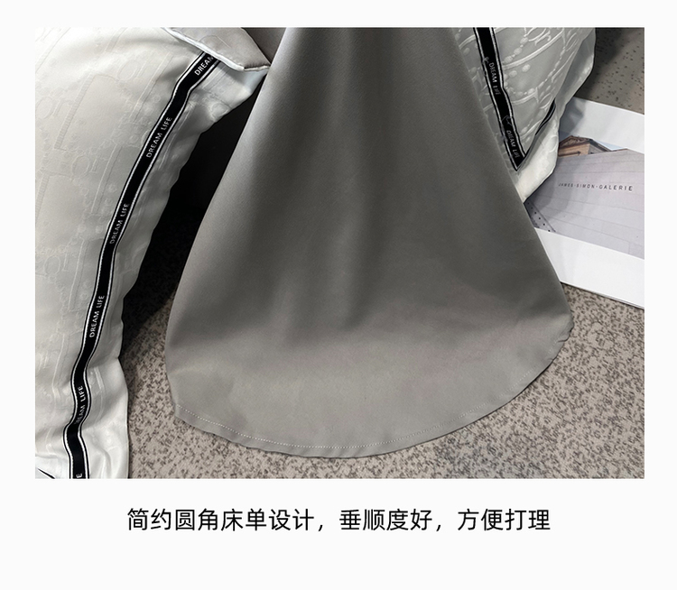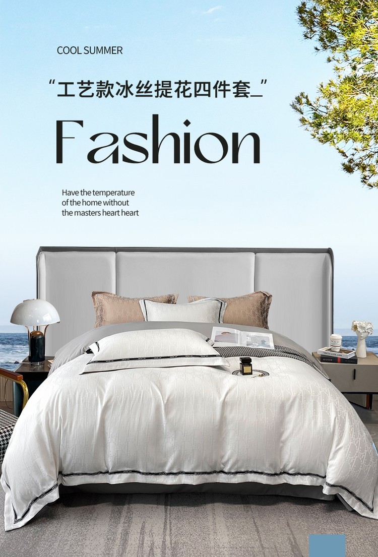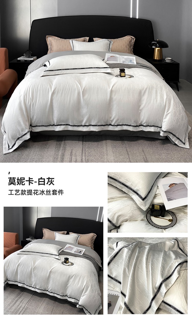 商品名称:优悦2023新款提花冰丝系列四件套 莫妮卡-白灰