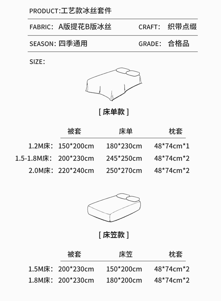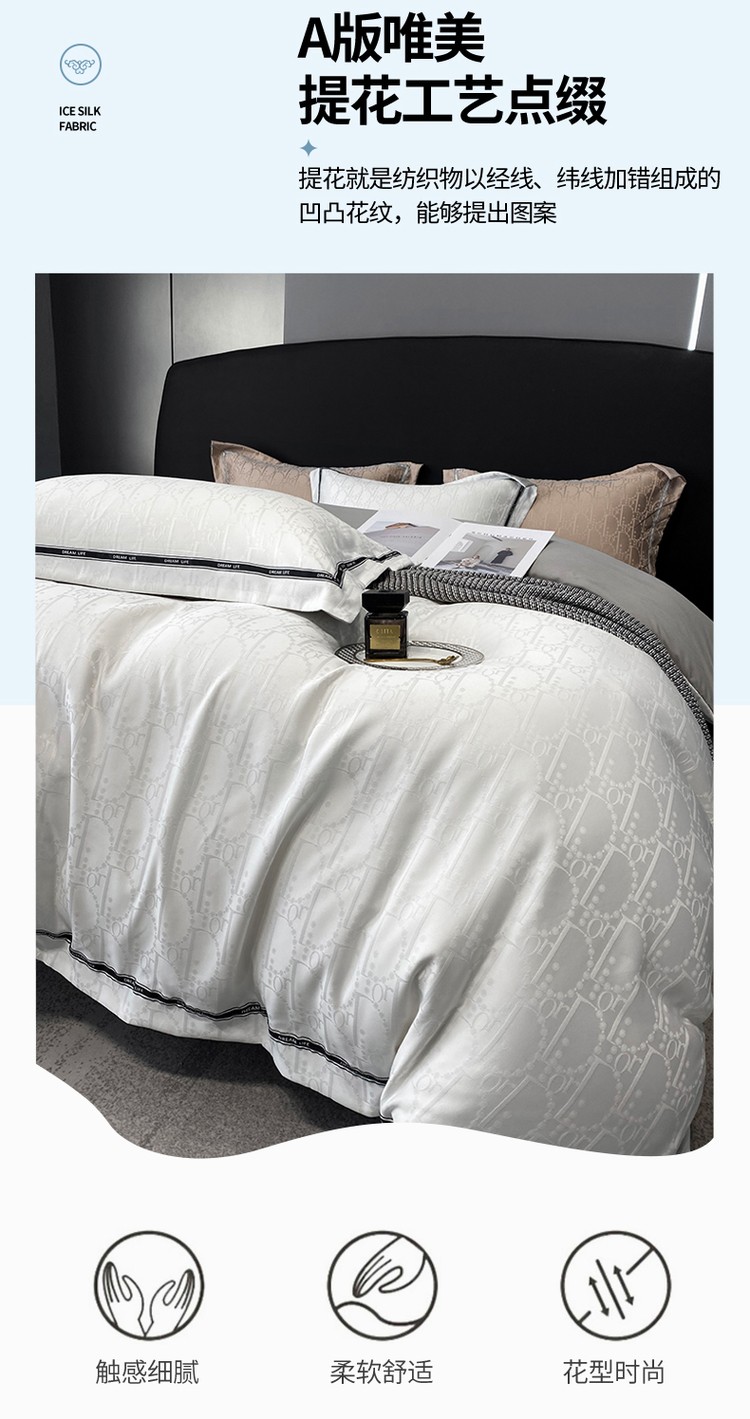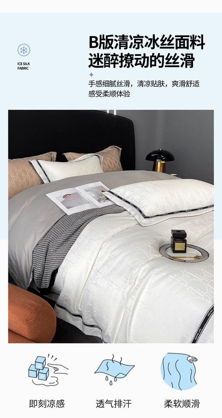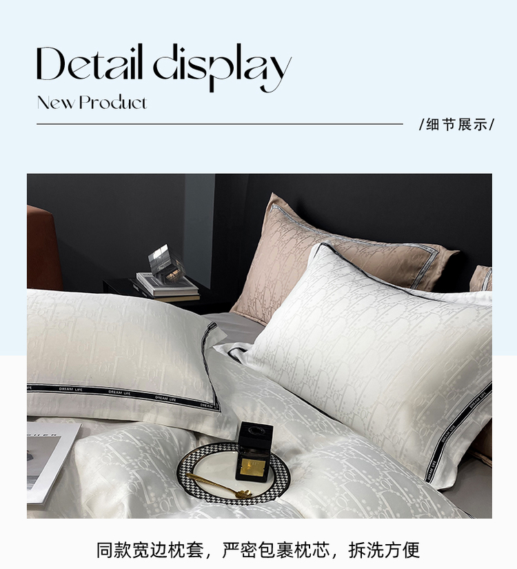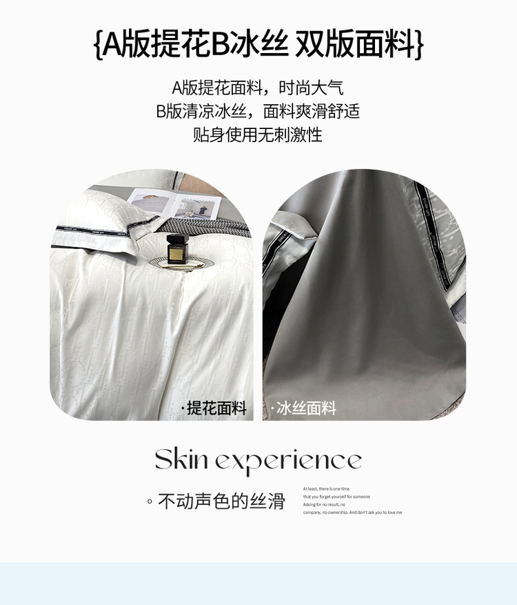 商品名称:优悦2023新款提花冰丝系列四件套 莫妮卡-白灰