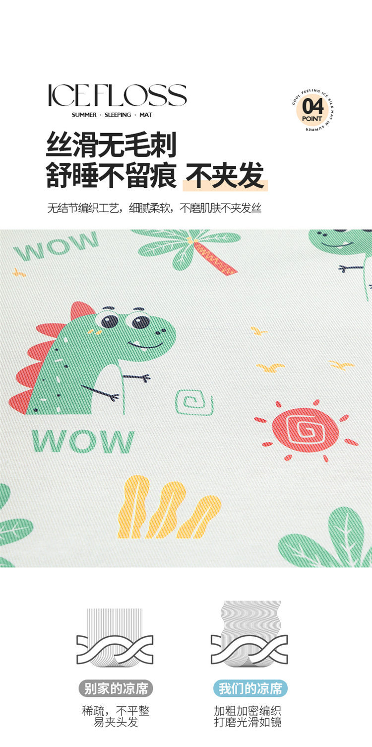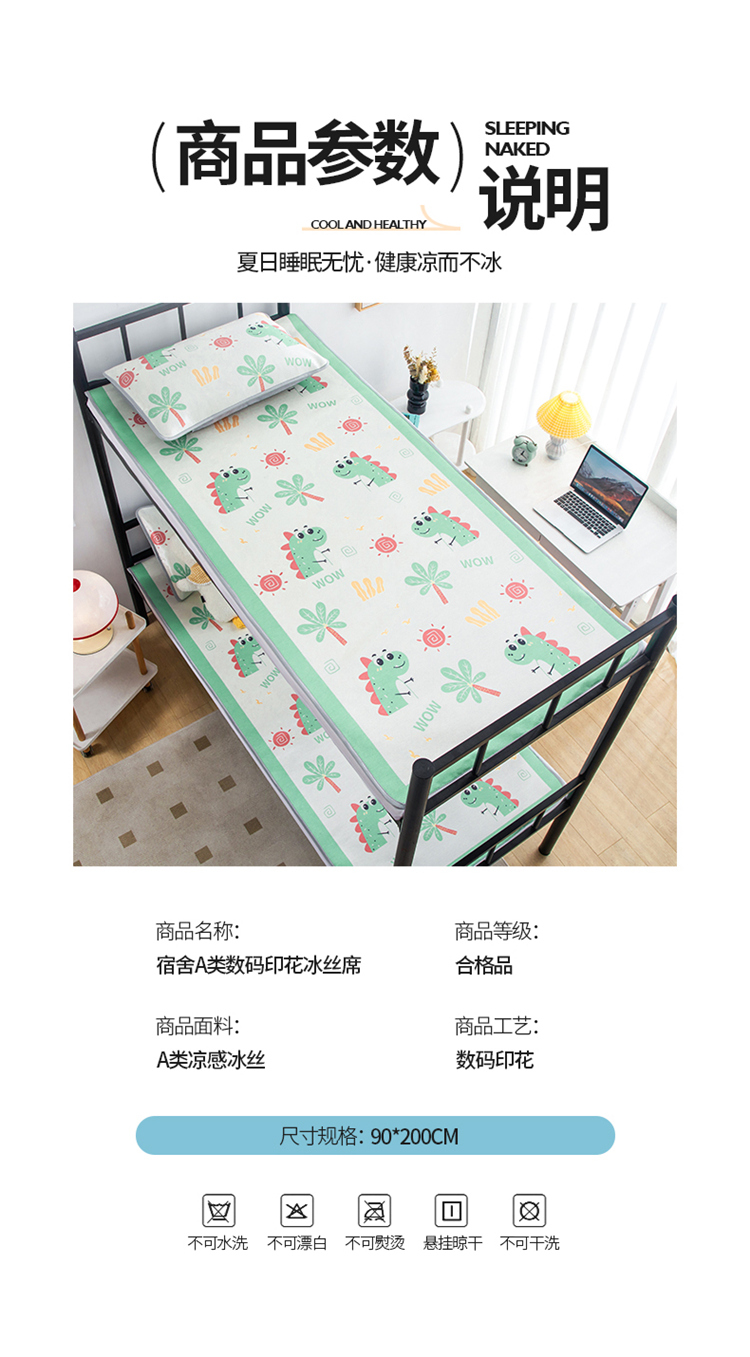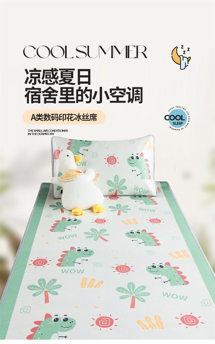 商品名称:欣品希 2023年新款学生宿舍单人冰丝席凉席两件套 可爱恐龙